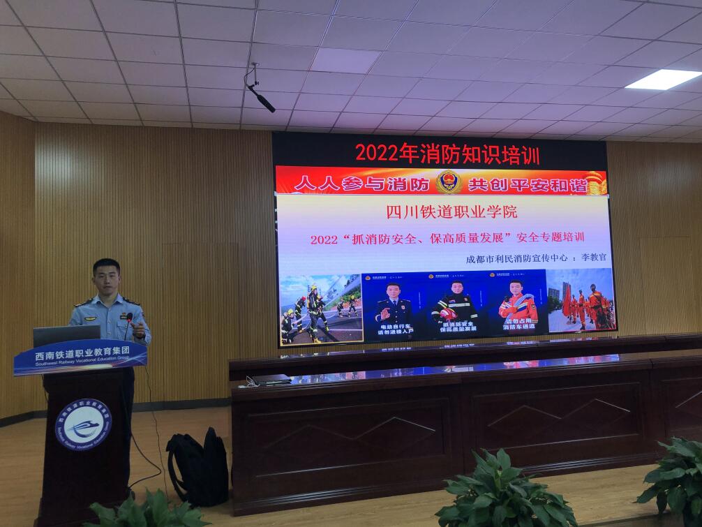 为进一步增强师生消防安全意识,提高师生火灾防范技能及逃生应变能力,11月23日beat365官网以“抓消防安全,保高质量发展”为主题,邀请成都市利民消防宣传中心李凯教官到校开展2022年消防知识培训及实战演练。