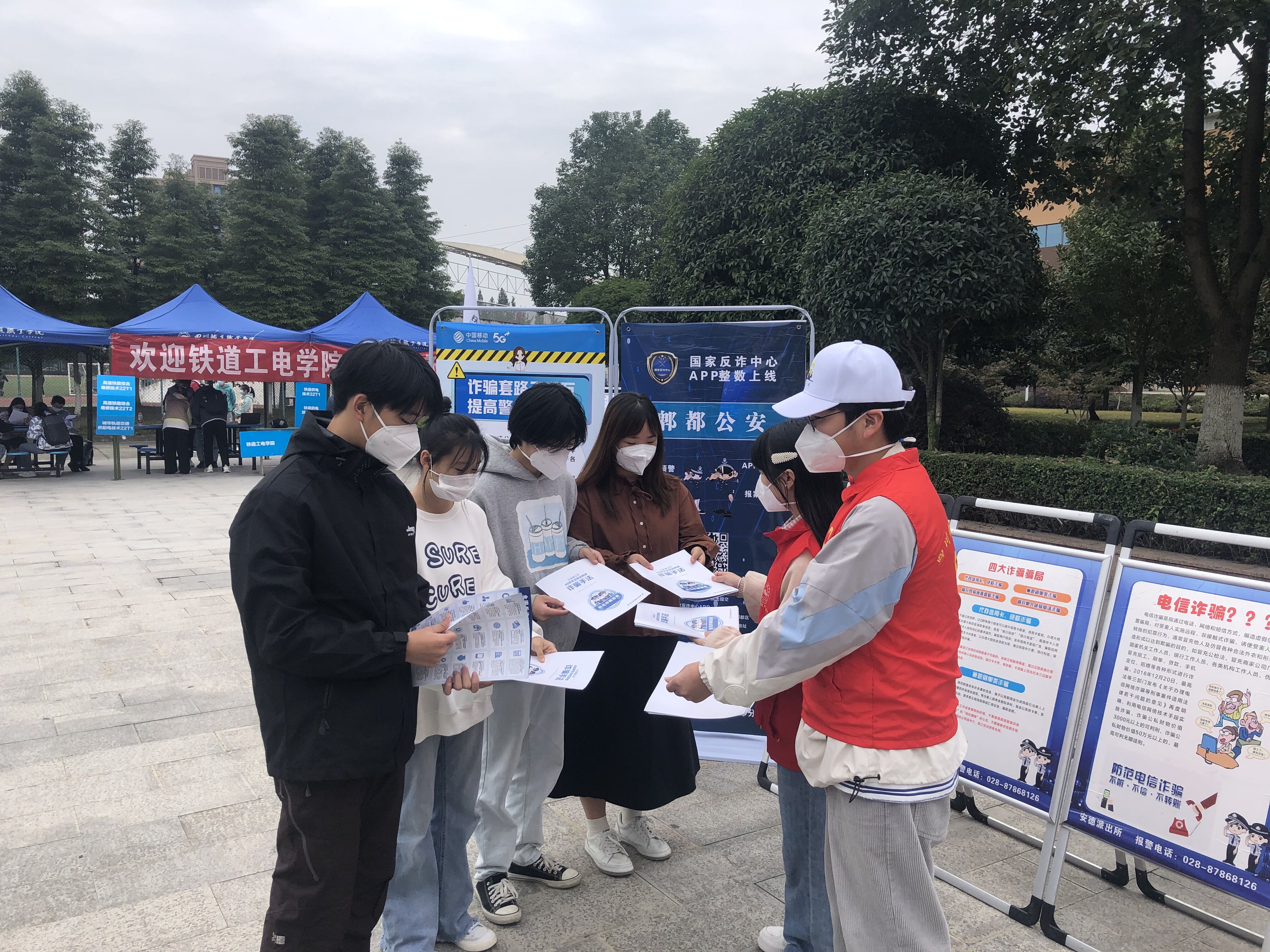 10月14日,正值2022届新生报到之际,beat365官网安全保卫处联合安德街道综治办、安德街道工会、安德街道派出所开展校园法治安全宣传活动,帮助新生扣好人生第一粒扣子,培育遵规守纪、学法守法意识。
