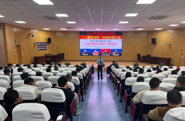 在学术报告厅的消防知识培训中,成都市利民消防宣传中心张浩教官结合近年来真实火灾案例进行分析,从消防法律法规的讲解、预防火灾的措施、学校消防工作能力建设、火灾的应急处理以及常用消防器材的使用等五个方面讲解消防安全知识。