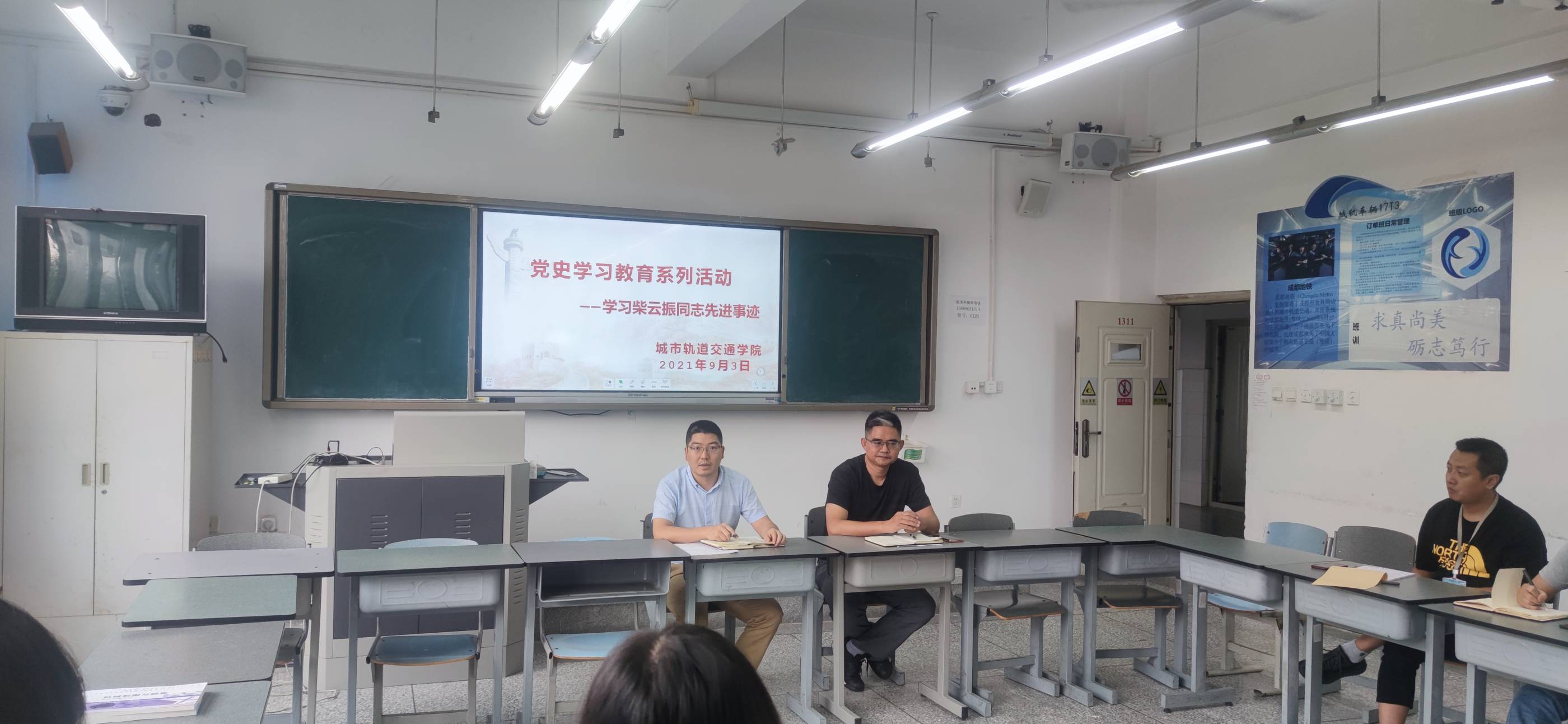 2021年9月3日上午10点,城轨交通学院在一号教学楼1311室召开柴云振英雄事迹学习会暨2021-2022学年第一学期第一次院务会。