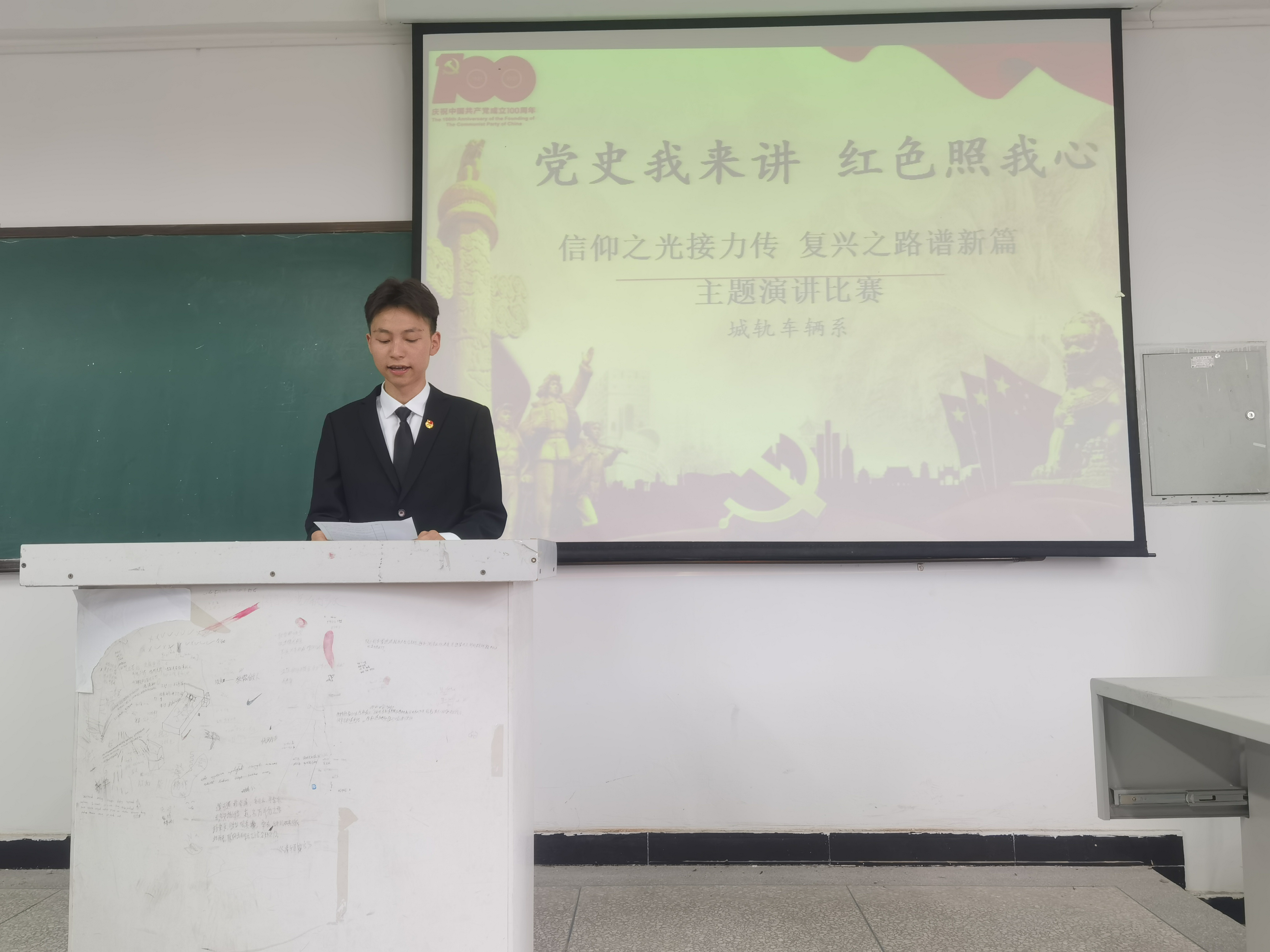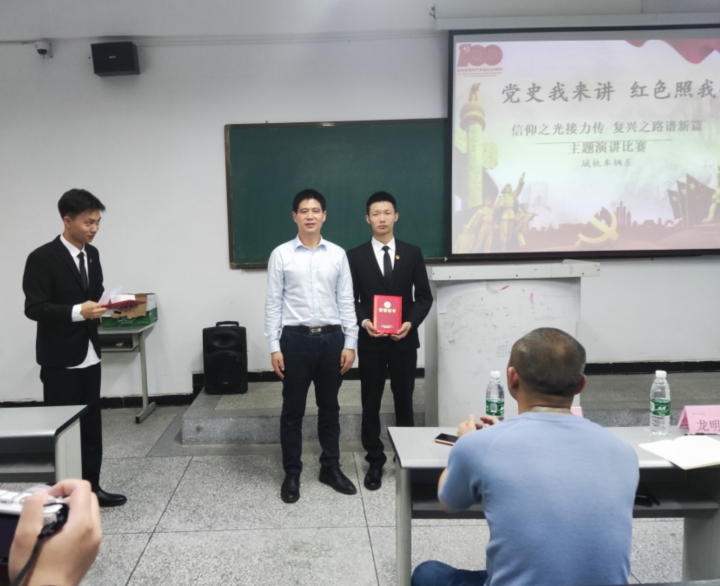 为推进“四史”学习教育,庆祝建党百年,引导广大青年学生重温红色记忆、缅怀革命先辈,传承红色基因,激发爱国力行,2021年5月13日晚上18:50,beat365英国官方网站城轨车辆系在1519教室举办了“党史我来讲 红色照我心”演讲比赛,我系19级、20级共9个班级总计58人参加了本次活动,邀请了城轨车辆系党总支书记龙明贵、系团总支书记兼19级辅导员罗希、系党总支组织委员兼18级辅导员郭尧鹏三位老师担任评委。系学生会宣传部干事谢程担任主持。 本次比赛,以“信仰之光接力传·复兴之路谱新篇”为主题,经过初赛选拔,共有 7名同学脱颖而出,进入决赛环节。比赛中,各位选手按照抽签顺序依次上台演讲,他们用饱满的热情,丰富的语言,围绕革命先辈、开国将帅、英雄模范、先进典型和在百年党史历程中具有重大影响的历史事件,结合自身经历、学习感悟等,以自身独特视角开展演讲。演讲比赛现场气氛热烈,掌声迭起,将活动一次次推上高潮。经过一番角逐,城轨20T2班屈契荣获一等奖,城轨20T1班魏欢、城轨20T2班杨振森分别获得二等奖,城轨20T1班易嘉先、城轨20T2班龙加俊、城轨20T3班杨利峰分别获得三等奖,城轨20T3班阮石灿获得优秀奖。最后,三位老师分别为参赛获奖者颁发奖品并对本次活动做了总结。 通过此次比赛活动,同学们重温了党的光辉历史,深化了对党的认识,歌颂了党的伟大成就,表达了对党的崇高敬意,展现出了新时代青年的思考与感悟。