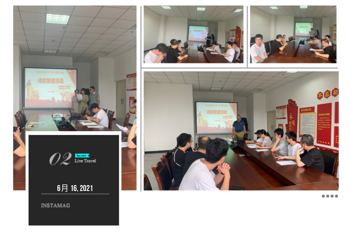 此次诗歌朗诵主要围绕“红船精神”、“工农群众的力量”、“长征精神”、“延安精神”、“传承红色基因”等内容展开。老师们根据活动要求,精心选择诵读内容并认真排练。朗诵会现场气氛热烈,老师们以饱满的热情、激昂的语言、大方得体的举止来展现自己对党和祖国热烈的感情。整个会议室飘荡着老师们铿锵有力的声音,在场者无不聚精会神地聆听着,有人还时不时抄录经典诗句,有几位朗诵者出场便得到观众们的热烈欢迎,给人留下了深刻的印象。