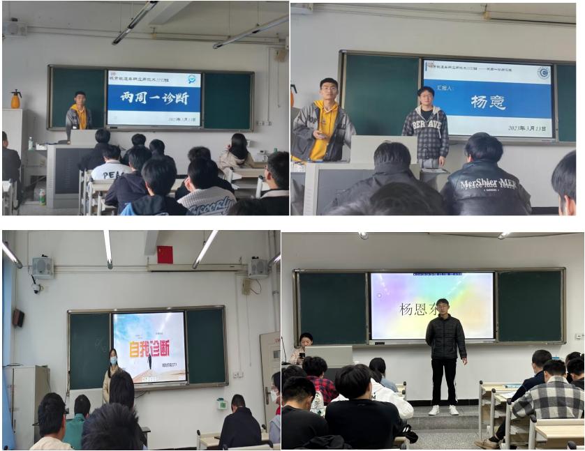 为进一步加强学风建设,帮助学生树立正确的学习目的和科学严谨的学习态度,珍惜学习时光,充分发展自己的智力和潜力,培养良好的学习习惯,自觉形成优良的学习行为。从第三周起,学院在各班实施了“两周一诊断”活动。 专(兼)职辅导员、教学干事利用主题班会、早晚自习带领同学们围绕目标设定、行为习惯、学习态度、学习动力、学习方法、社会实践、目标完成情况等方面进行自我诊断、自我反思。活动中,每位同学走上讲台,进行了自我诊断发言,全面查找自身存在问题,深刻剖析问题原因,提出改进措施。不少同学在台上还有脸红、出汗等紧张现象,通过交流发言,同学们找到了差距,明确了方向,表示将发奋学习,严格要求自己,朝着目标努力奋进。 通过“两周一诊断”活动,提高了学生的学习认知,帮助学生养成自我教育意识、规则意识、自律意识,激发学生追求卓越的内在动力。本项活动也是学院进行学生学习生活、内心世界调研的重要办法,在学生的自我反思中发现共性问题,为更好地研究、改进、提升学生的思政教育和教育教学管理工作提供了依据。