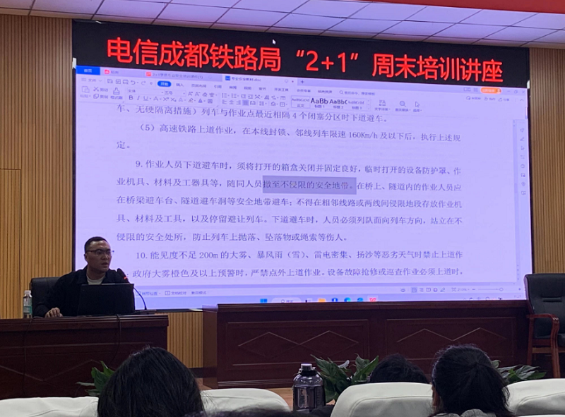 3月19日,电信工程学院在学校学术报告厅面向全体“2+1”学员开展了专题安全知识培训,培训由中国铁路成都局集团有限公司成都电务段职教科工程师罗世成授课主讲。 在培训中,罗世成强调,铁路运输事业最关键的是什么?是安全!他告诫同学们要牢记“三不动”、“三不离”、“四不放过”等电务基本安全制度和规章,带领同学们学习了《铁路交通事故调查处理规则》以及非正常情况下信号设备故障应急处置预案。通过4.29荣家湾事故、7.23甬温线动车交通事故和4.28胶济铁路特别重大事故等案例,以血淋淋的教训,警示同学们,轻视安全必将造成惨痛的后果。 铁路运输是国家的重要交通方式,是国家经济发展的大动脉,而铁路信号是铁路运输安全的一大脊梁柱,承载着千万群众的人生安全,更是承载着铁路运输的未来。树立安全生产法制观念,牢记安全生产红线是每个铁路职工义不容辞的义务和责任!同学们纷纷表示,听了老师的讲授,进一步增强了红线意识、大局意识、危机意识,做到警钟长鸣,常抓不懈,为开展安全生产工作提供强有力的保障。