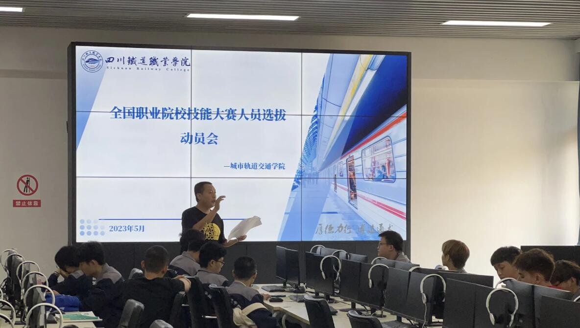 为迎接2023年全国职业院校技能大赛,营造“学知识、比技能、练本领、积极向上”的育人氛围,2023年5月16日,城市轨道交通学院召开全国职业技能大赛动员会。党总支书记王文杰、实验员李河盟及全体在校学生参加动员会。 李河盟介绍了本次大赛中受电弓检修、车门检修、转向架测量等模块内容及本次大赛人员选拔的相关要求。王文杰详细介绍了以往学院学生参赛情况及毕业生成才典型。他强调,技能大赛是为同学们展示自我实践能力的平台。通过技能大赛,将所学的理论知识结合实际加以应用,提高实际操作能力,锻炼良好的心理素质,培养精益求精的职业素养。他鼓励同学们树立信心,积极报名,参与选拔,在准备和投入中更快成长。 接下来,学院将选拔一批拔尖学生,形成培养梯队,不断强化技能训练,为全国职业技能大赛做好充分准备。
