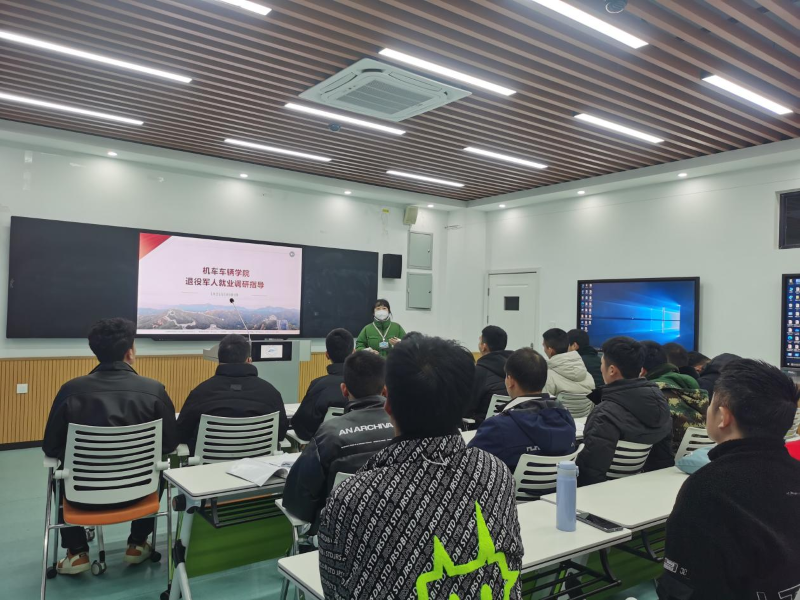 为全面贯彻落习近平总书记关于做好高校毕业生就业工作的重要指示精神,引导大学生树立正确的择业观和就业观,提升退役军人就业能力,12月27日,机车车辆学院在1207教室开展军转班就业宣讲动员。辅导员方国春、刘静雅老师与学生进行深入交流,铁道机车运用与维护21T6班全体学生参会。 方国春从就业形势分析、就业政策解读以及个人准备三方面进行分享。他强调,思想是行动的先导,退役军人应传承军队优良作风,保持“退伍不褪色”的本色,充分准备、把握机会、主动出击,在平凡的岗位上再立新功。 刘静雅重点从简历制作、面试要点、资料准备等方面进行分享。她指出,全体同学要认清形势,精准定位意向岗位,未雨绸缪多手准备。与此同时,刘静雅现场调研了同学们的实习就业意向,并就大家的提问予以耐心解答。 此次动员会是学院学习贯彻党的二十大精神,促进退役军人就业工作摆在更加突出的位置的具体体现,反映了学院对退役军人就业工作的一贯重视。近年来,机车车辆学院始终坚持把就业作为重要工程来抓,认真落实退役军人能力培训、就业促进、平台搭建等各类政策,持续抓好教育培训,有序开展适应性培训、技能培训,帮助退役军人实现高质量就业。
