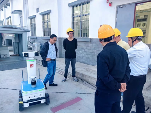 王立一行首先观摩了自主巡检机器人的使用方式,详细了解了其运营情况,并亲自操作了控制终端及使用界面。通过观看机器人历史检测数据及违规违章报警数据,他们进一步认识到了机器人在实际工作中的效用和准确性。还观摩了机器人充电舱及巡检机器人本体。详细了解了机器人装备的红外摄像头、云台、激光雷达、惯性导航、超声波测距防撞以及安捷轮机走行机构。以及这些技术配置如何确保机器人在巡检过程中的高效性和安全性。工作人员还演示了机器人的巡检流程,让我们对机器人如何在实际环境中运作有了更直观的了解。