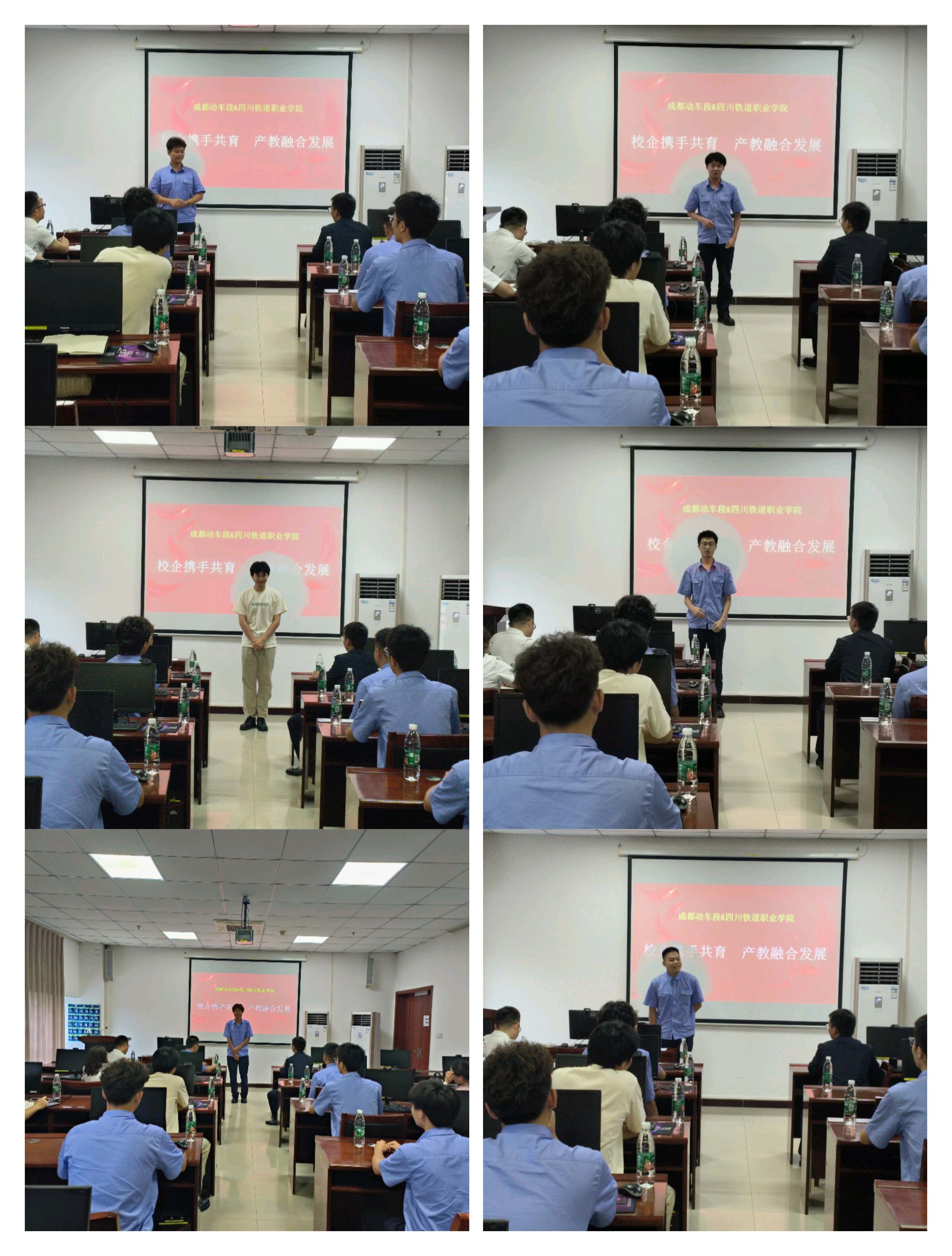在座谈会上,双方围绕动车检修人员工作的一天、动车检修人员职业需求等方面进行了深入交流。2024年全国五一劳动奖章获得者成都动车段助理工程师、高级技师杨启义向调研团队介绍了动车检修人员的工作情况和职业素养要求,重点介绍了beat365官网毕业生在成都动车段的发展情况,从执行能力强、专业知识过硬、成长发展好等方面给与了充分的肯定。成都动车段2024年新入职的beat365官网毕业生代表就个人近期的工作情况、并结合实际从夯实职业技能、提升综合能力等方面对学弟学妹提出了学习建议,希望学校在今后的思政教学中进一步强化对学生职业道德、社会责任感和创新精神等方面的教育。黄翎峰从专业技术角度出发,就加强技术训练,参加技术比武、技术练兵等活动的重要性,和同学们如何在动车段快速成长提出了建议。
