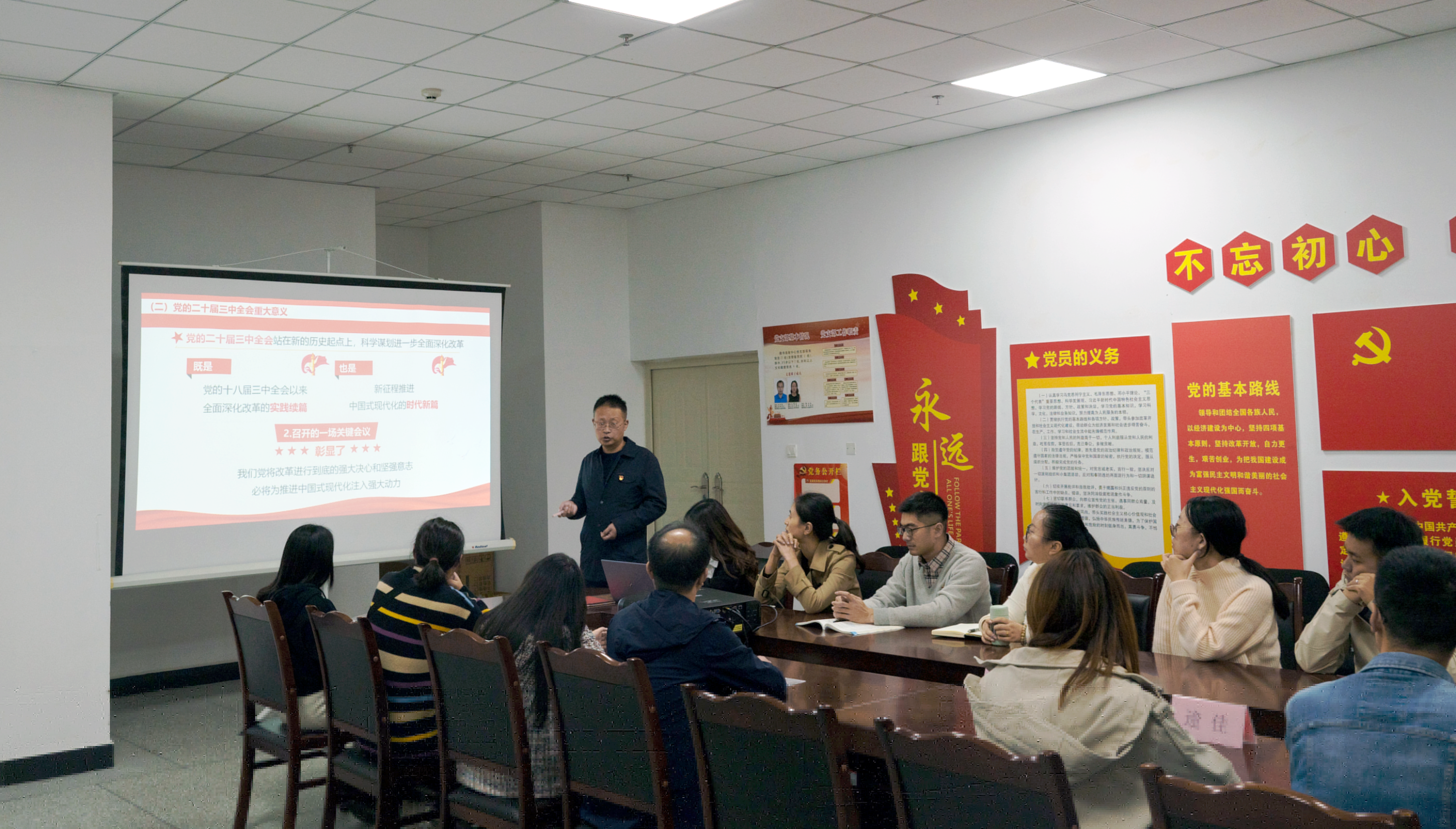 活动在beat365英国官方网站铁道工电学院党总支书记张果讲党课中拉开序幕,张书记全面梳理二十届三中全会内容、精神,指出其对职业教育发展的指导意义,并且分析了当前职业教育发展的现状和问题,提出了一系列具有针对性的对策和建议。张书记强调,职业教育要紧密结合二十届三中全会精神,抓住机遇,迎接挑战,不断推进改革创新,以钉钉子的精神推动职业教育的发展,共同开创职业教育的新局面,为培养更多高技能人才、奋力谱写中国式现代化四川新篇章贡献更加强大的力量!