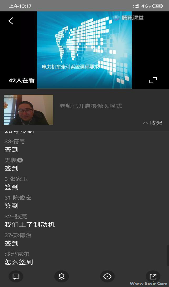 毛永文老师通过腾讯课堂向机车18T2班级的学生进行《牵引控制系统2》课程的在线教学。