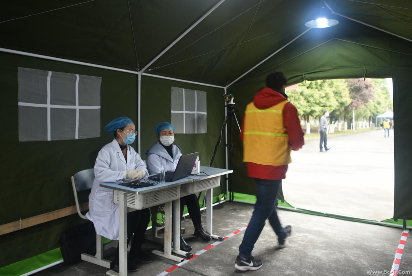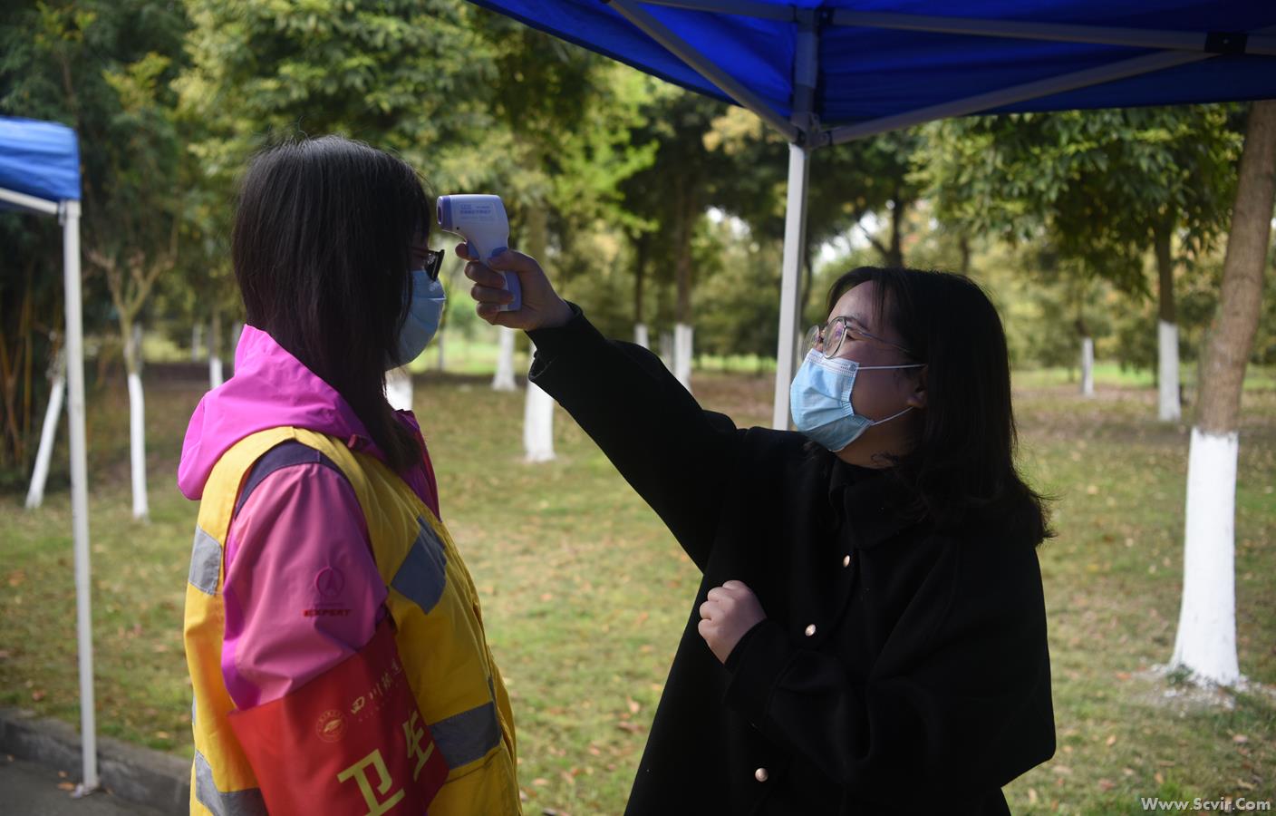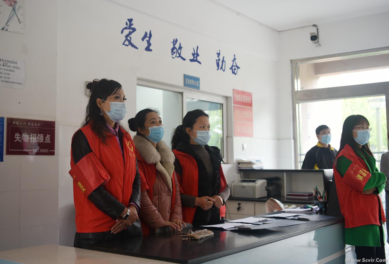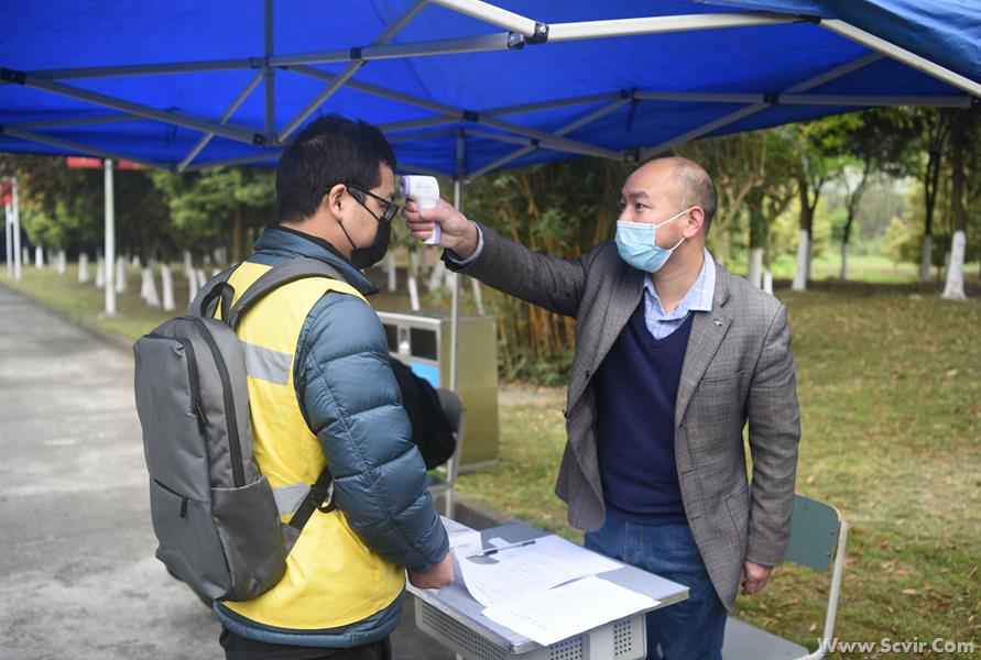 演练正式开始: 一、严把入口,做好入校管控 1.人员车辆引导。学生搭乘的车辆即停即走,工作人员维护校门外交通秩序,学生佩戴口罩进入指定通道。 2. 体温监测。学生在指定通道接受红外成像测温,体温检测合格(37.3℃以下)进入报到程序。 3. 学生核验身份及报到。学生到相应类别报到通道有序排队(保持1米以上的间距),报到时由班主任对本班学生进行逐一核验身份并报到、用额温枪检测体温,在《学生返校信息登记表》(电子或纸质)中记录入校时间及体温,确认正常后出具《报到完毕、准予入校》单,经安保人员复验后进入校园。