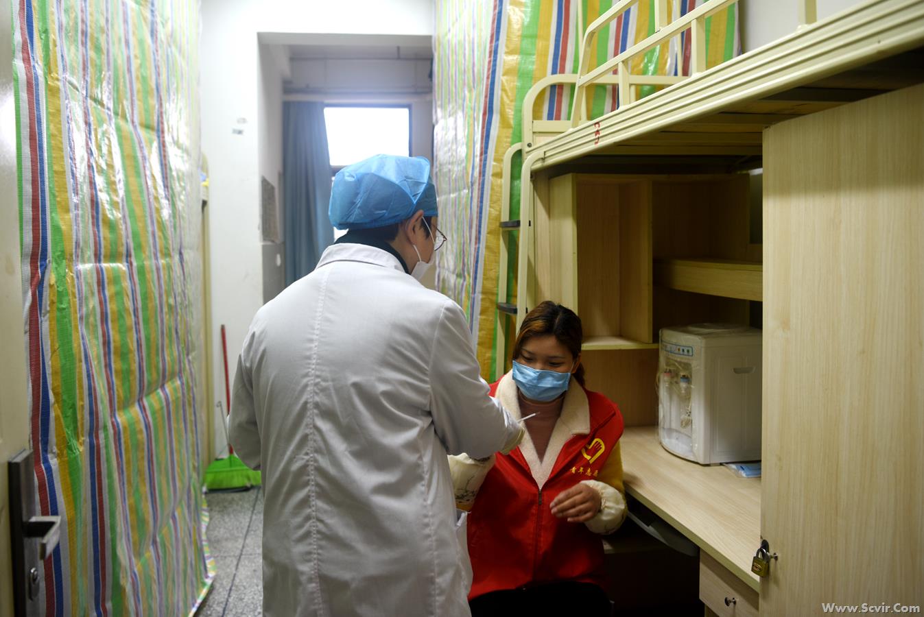 四、突发情况不慌张,应急处置条条清 1.入校时的应急处置 (1)体温监测时出现体温异常应急处置。某学生接受红外成像测温仪监测,体温异常,监测仪报警;安保人员带该名同学,经教职工出入通道到预检分诊点,由医务人员复查;医务人员在学生休息10分钟后,对学生进行体温测量、健康状况问询等预检工作;经预检分诊医务人员核检温度正常,再次按入校流程报到。 (2)学生报到时出现体温异常应急处置。班主任用额温枪测量学生体温时,发现某名同学体温异常或有咳嗽、乏力等症状,由保安人员领到预检分诊点复查;医务人员在该同学休息10分钟后,对学生进行体温复测、问询健康状况等预检工作;预检复测温度仍然异常;由医务人员通知该同学所在系的卫生员到场,并联系定点医院(安德卫生院)处置,待命车辆经体育场之间道路,从侧门出校。 2.晨、午、晚检时的应急处置 (1)临时隔离。生活辅导员按防护规范要求将2号学生公寓第一层第一片区2103室体温检测中体温异常学生某某及同宿舍密切接触同学送往临时隔离观察点。临时隔离观察点管理人员安排学生进观察室隔离休息,安抚学生情绪,登记学生基本信息。电话通知学生所在系卫生员到达隔离观察点待命。同时通知医务科安排进一步复查。 (2)复查体温 医务人员在学生休息10分钟后,对临时隔离学生逐一进行体温测量、健康状况问询等预检工作。 (3)体温复检异常情况处理 体温复检仍异常,医务人员通知消杀人员对事件发生宿舍进行消毒处理,通知医院做好接诊准备,通知系卫生员,专用车辆送发热学生前往医院就诊。 (4)体温复检正常情况处理 隔离观察室中经复检体温正常学生继续采取临时隔离观察,待发热学生诊断报告明确后决定是否继续隔离。留观学生坚持做好晨午晚体温三检,由管理人员对体温检测情况进行登记。