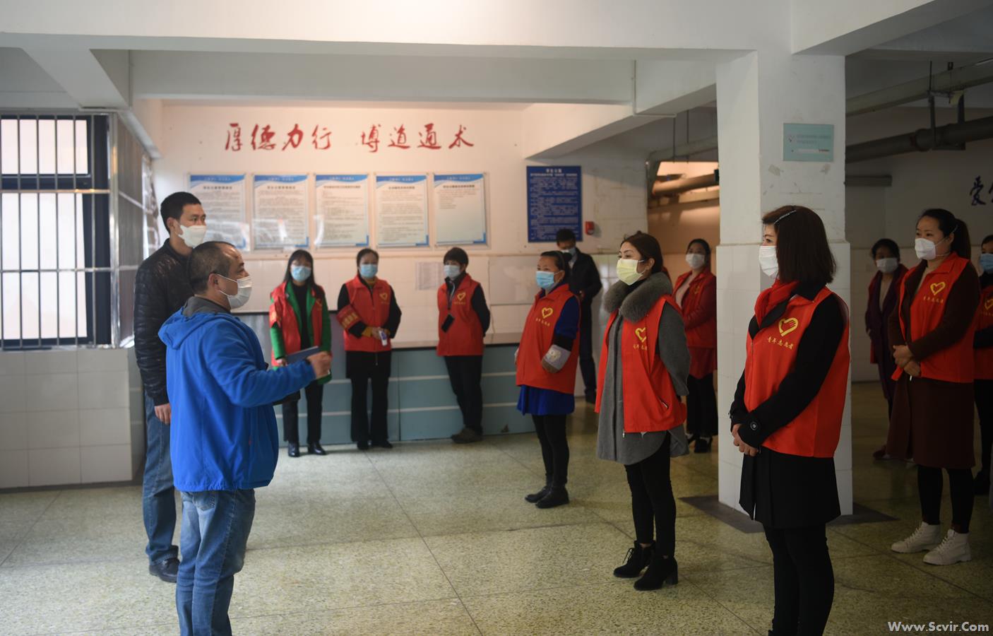 为真正做到有效演练,防范于未然,学院疫情防控工作领导小组全面落实上级工作要求,结合学校实际,精准施策、科学防控,详细制定相关预案,准备各类物资,并对演练做出详细部署安排,明确演练流程。实战演练中,教职工按照人员分工及岗位责任直接参与,家长和学生由教职工扮演。分别模拟入校管控场景、晨午晚检场景、就餐场景、应急处置场景等发现体温异常及疑似症状学生的应急处置流程。演练流程全程跟拍记录,对演练中暴露的问题逐一解决,最终会形成标准的疫情防控处置流程,供广大师生学习。 上午8:45,周立做演练动员,党委委员、副院长刘昊君、吴斌、黄勇做相关工作安排。