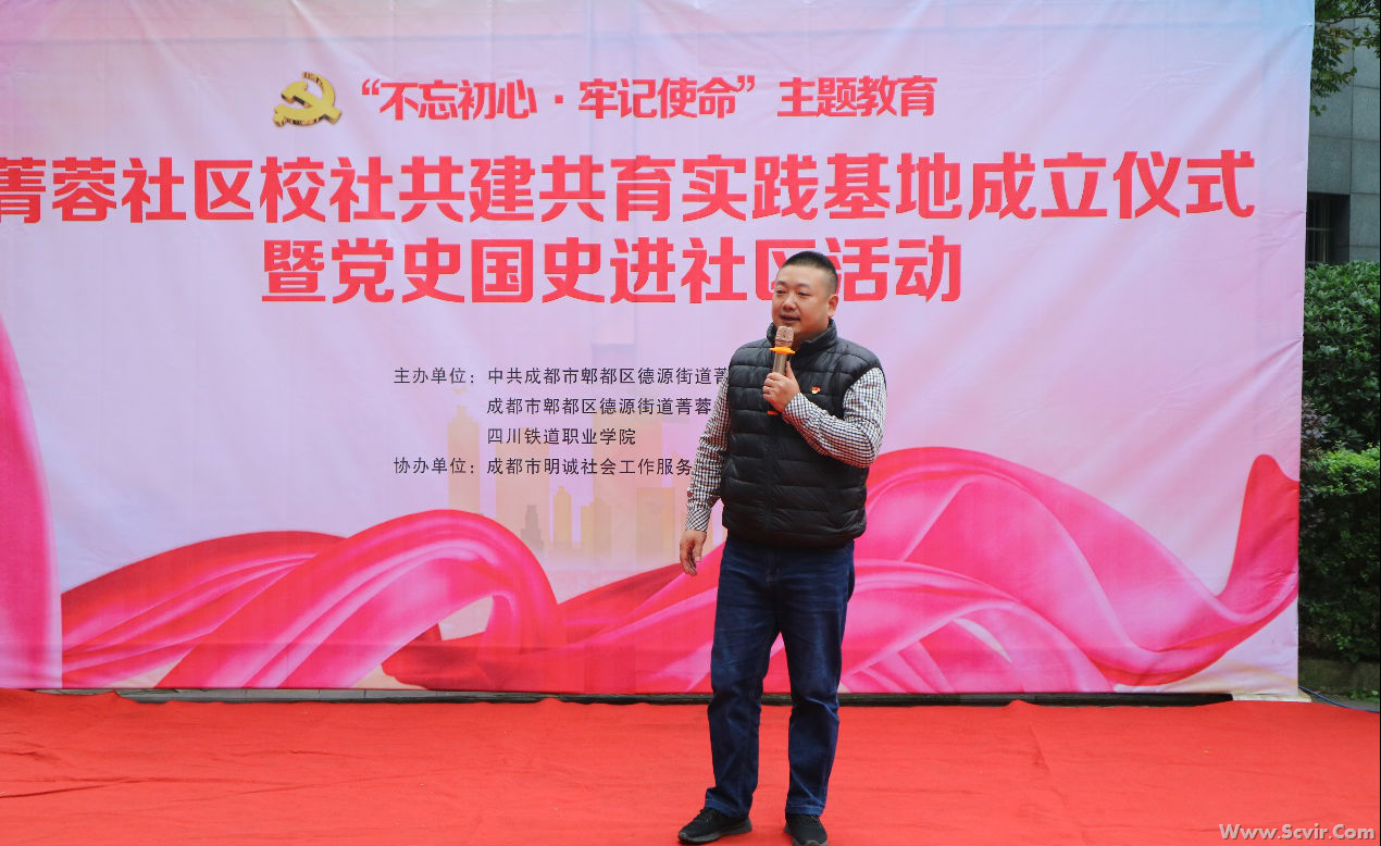 2019年11月9日,为落实习近平总书记2019年3月18日“把思政小课堂同社会大课堂结合起来”讲话精神的要求,思政部联合电气工程系党总支组织我院190名师生到德源镇菁蓉社区开展校社“共建共育同发展”主题实践研修活动。 德源街道党工委副书记、纪工委书记罗曦、德源街道菁蓉社区党委书记方福成、党委副书记曹庆、德源街道菁蓉社区主任魏朝明出席了此次活动,我院思政部主任朱红、电气工程系党总支书记张果、思政部全体教职工和电气工程系值班班主任、青马社全体成员和学生代表共计190名师生和菁蓉社区居民代表参加了此次活动。