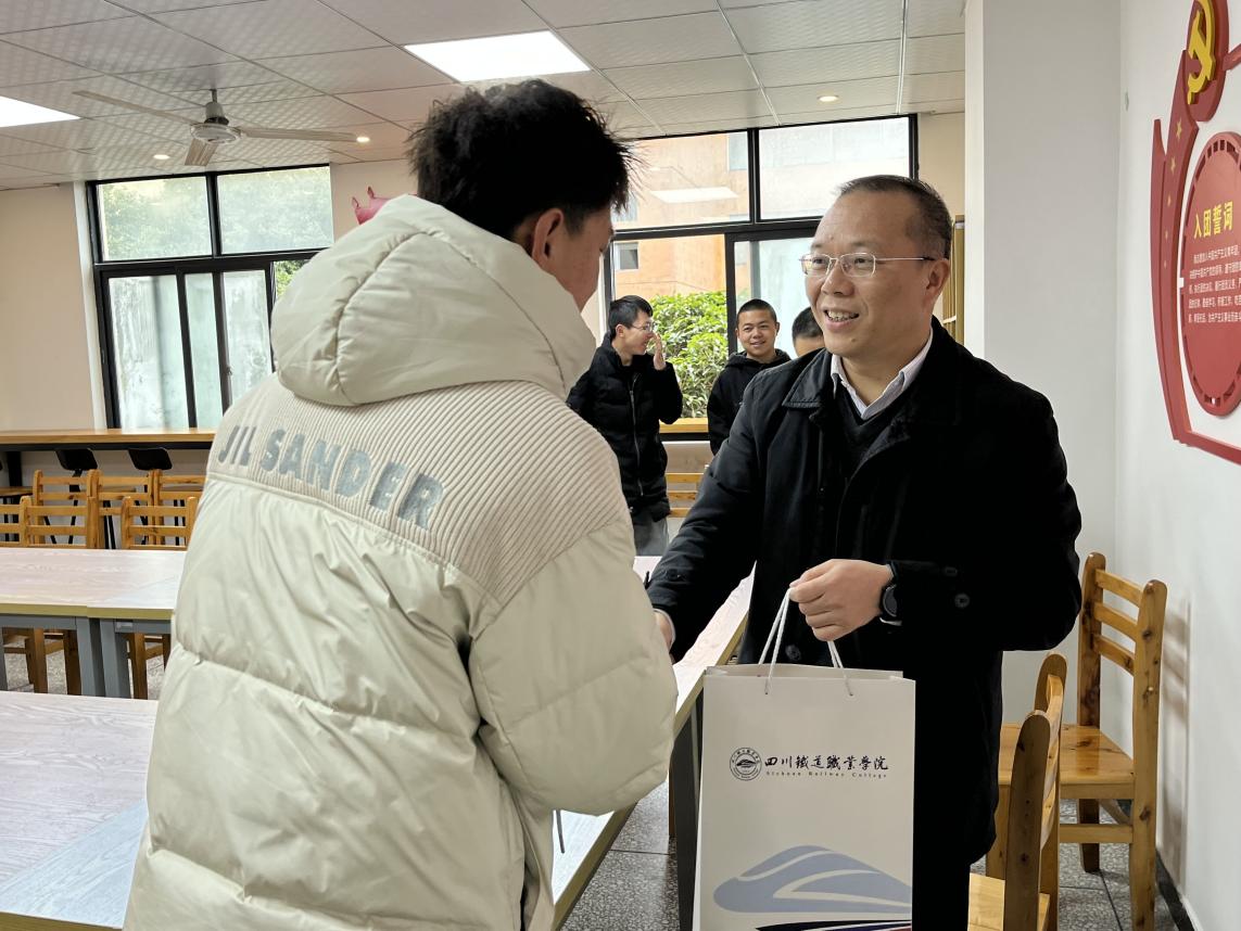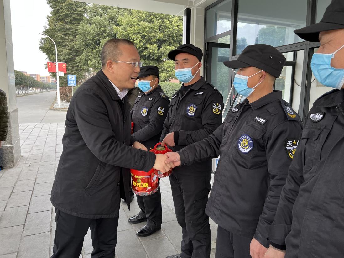 1月31日,农历除夕,学校党委书记贺兆轩同志带队对值班人员和留校学生进行了慰问,党委办公室/学院办公室/外事办公室、党委学生工作部/学生处/就业处、后勤国资处、安全保卫处相关人员参加慰问。 贺兆轩同志对在万家团聚的日子为了学校安全、后勤保障仍然坚守岗位的值班人员表示感谢,并代表学校向节日期间仍然在工作岗位的全体干部职工及家人拜年。