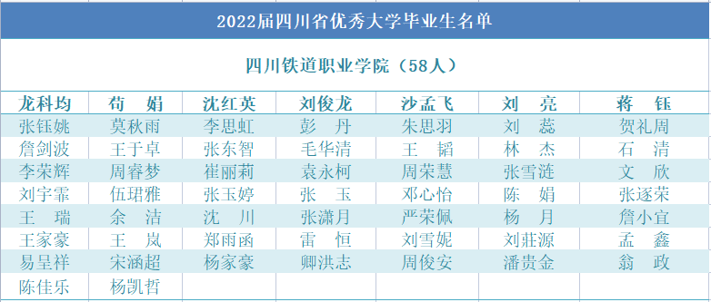 近日,四川省教育厅公布了2022届四川省优秀大学毕业生认定结果。经班级推荐、院系推荐、学校审核、教育厅复核,共计认定17611名大学生为2022届“四川省优秀大学毕业生”。其中,beat365官网共有铁道交通运营管理19T1班王瑞等58名学生入选。