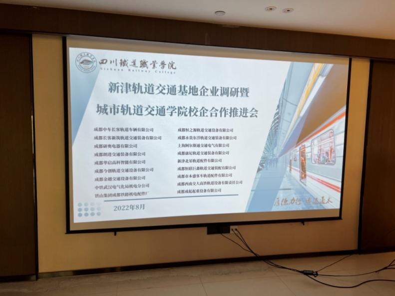8月23日上午,学校校长赖芳带队赴新津轨道交通基地进行企业调研,并召开了城市轨道交通学院校企合作推进会。成都中车长客轨道车辆有限公司总经理张洪军,成都长客新筑轨道交通装备有限公司综合部部长侯瑜、物资部部长张国才,成都研奥电器有限公司人力资源部长张冯洁,成都朗进交通装备有限公司总经理何川,成都康尼轨道交通装备有限公司生产部长毛良,成都华启高科智能有限公司总经理杨勇林,成都今创轨道交通设备有限公司商务经理吕波,成都金越交通设备有限公司销售经理吕益棒,上海阿尔斯通交通电气有限公司商务经理尹哲光,成都恒之源轨道交通设备有限公司副总经理安奎,成都永贵东洋轨道交通装备有限公司商务经理赵紫阳,新津北星轨道配件有限公司生产经理李金忠出席会议, 成都恒联巨鑫轨道交通装配有限公司总经理张延辉,成都市本盛客车轨道配件有限公司技术部部长谢国峰,中铁武汉电气化局机电分公司副总经理康志平,铁山集团成都铁路机电配件厂质量总监李文革,成都成起起重设备有限公司总经理车明者,成都西南交大高铁轨道设备有限责任公司技术部长刘泓。会议由城市轨道交通学院院长杨凤主持。