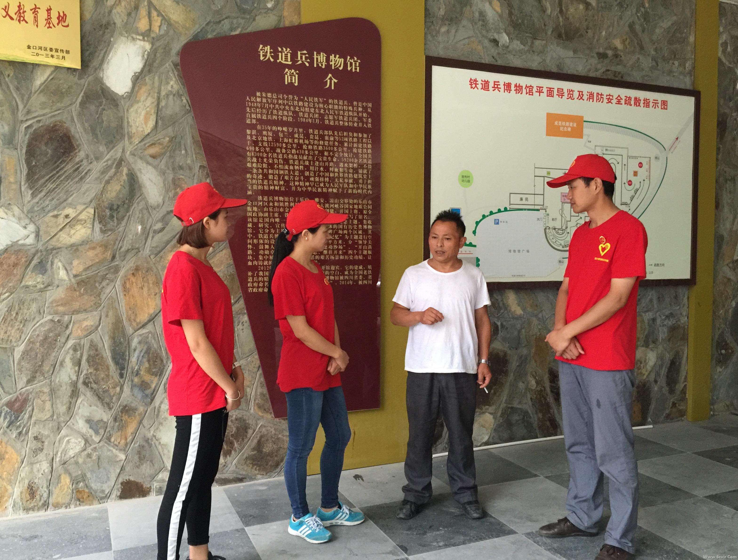7月16日上午,活动队来到象征“二十世纪人类征服自然的三大奇迹”之一的成昆铁路线,在金口河区开展“铭记成昆历史、弘扬铁道兵精神”的主题活动。 在金口河铁道兵博物馆,师生们参观了“领导关怀、鼓舞人心”“枪林弹雨、建功沙场”“开山筑路、功勋卓著”“永志不忘、继往开来”四个展区,了解铁道兵事迹,感悟铁道兵精神。学习过程中,师生们有幸遇到原铁十师四十六团三营的三位老铁道兵战士冯新才、袁国文及张翠祥。三位老战士回忆了自己参与修建成昆线的相关往事,用亲身经历告诉大家,铁道兵战士是怎样的一群人。那些真实而动人的历史事件,让在场的每一个人都受到了深深的触动。全体成员来到烈士纪念碑,深切缅怀逝去的铁道兵战士。