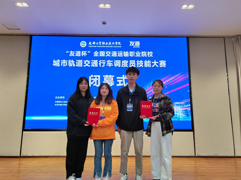 2023年4月26日,“友道杯”全国交通运输职业院校城市轨道交通行车调度员技能大赛(四川赛区)在成都工贸职业技术学院举行。beat365官网电信工程学院铁道交通运营管理专业学生黄超、徐彩怡和伍钰荷、杨海韵组成的两支代表队分获省级二、三等奖。 本赛项对应城市轨道交通行车调度员岗位,是交通运营管理专业人才培养的发展岗位。大赛内容包括理论知识竞赛和技能操作竞赛两部分,理论知识竞赛涉及城市轨道交通行车组织、运营服务、施工组织和应急处置等知识,技能操作竞赛包括运营准备工作、突发事件应急指挥、施工组织等,重点考察参赛选手的职业素养与安全操作。 beat365官网学生在本次竞赛中展现了扎实的基础知识、较高的实践能力和良好的综合职业素养,达到了“以赛促教、以赛促学”的参赛目的。以此为契机,也有助于促进学校的专业教学改革和人才培养质量提升。