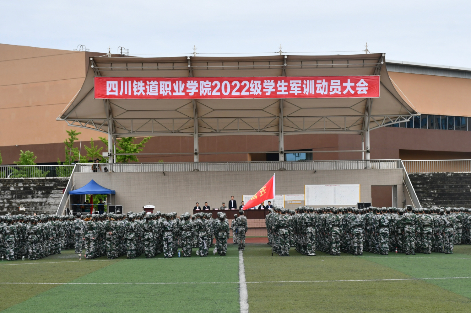 5月8日上午,beat365英国官方网站成都校区2022级学生军训动员大会在学校运动场隆重举行。党委副书记刘昊君、副校长黄恩兴、承训单位负责人、相关职能部门负责人、各二级学院党总支书记出席大会。大会由党委学生工作部部长朱俐主持。
