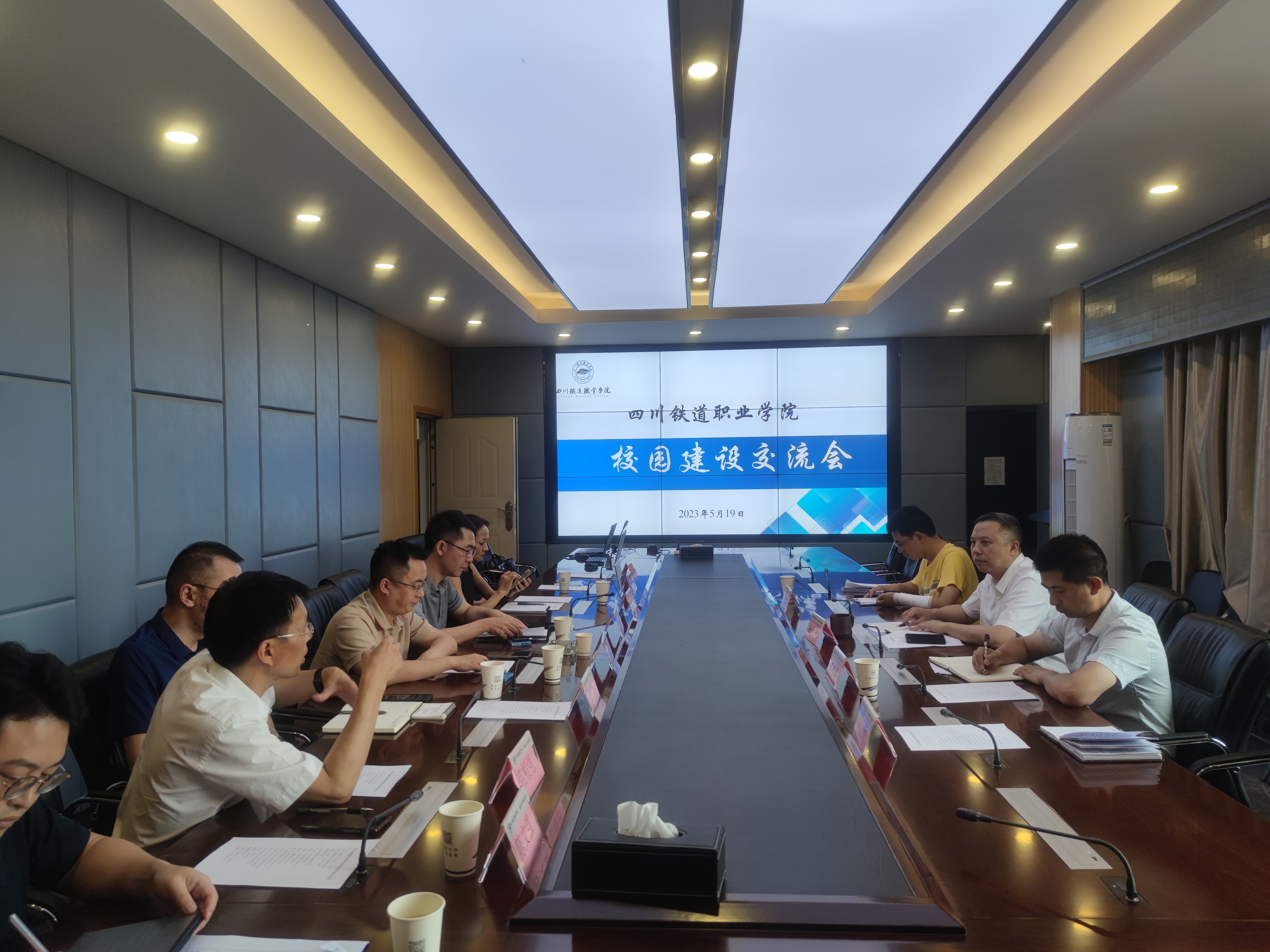 2023年5月19日下午,学校召开校园建设交流会。党委委员、纪委书记池秋平与北京国星基金管理有限公司成都办事处主任叶帆、中国建筑西南设计研究院有限公司邱小勇工作室执行主任周世鹏、四川尚泓教育管理有限公司副总经理苗根强一行进行了交流。 会上,池秋平欢迎和感谢北京国星基金管理有限公司等企业关心学校建设,介绍了学校办学情况和近期规划,询问了兄弟院校的建设经验和行业最新动态,提出了学校在扩大办学规模上优先考虑的方向。叶帆、苗根强介绍了企业情况及项目建设经验。通过交流,校企双方增进了了解,共享了信息,为学校相关工作的开展积累了经验。 计划财务处、基建处主要负责人参加了此次交流会。