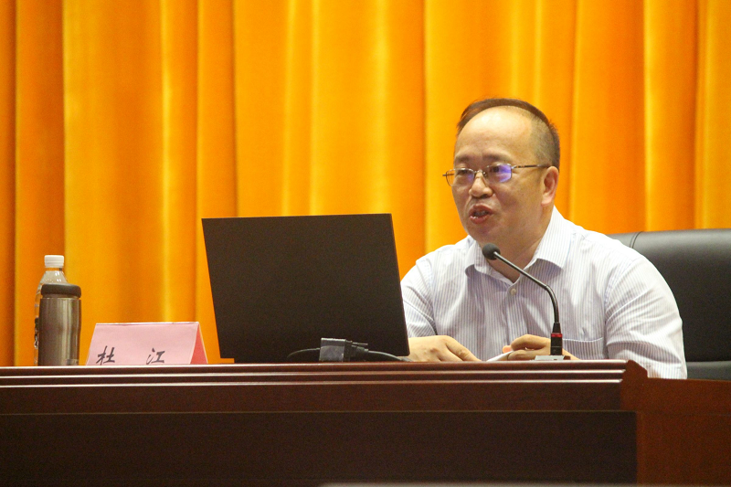 5月29日下午, 第十五期“川铁大讲堂”在学校大礼堂举行。四川省千人计划、四川省特聘专家、成都信息工程大学教授杜江为师生带来“聚焦现代通信技术 赋能助力质量提升”的专题讲座。副校长吴斌主持讲座。
