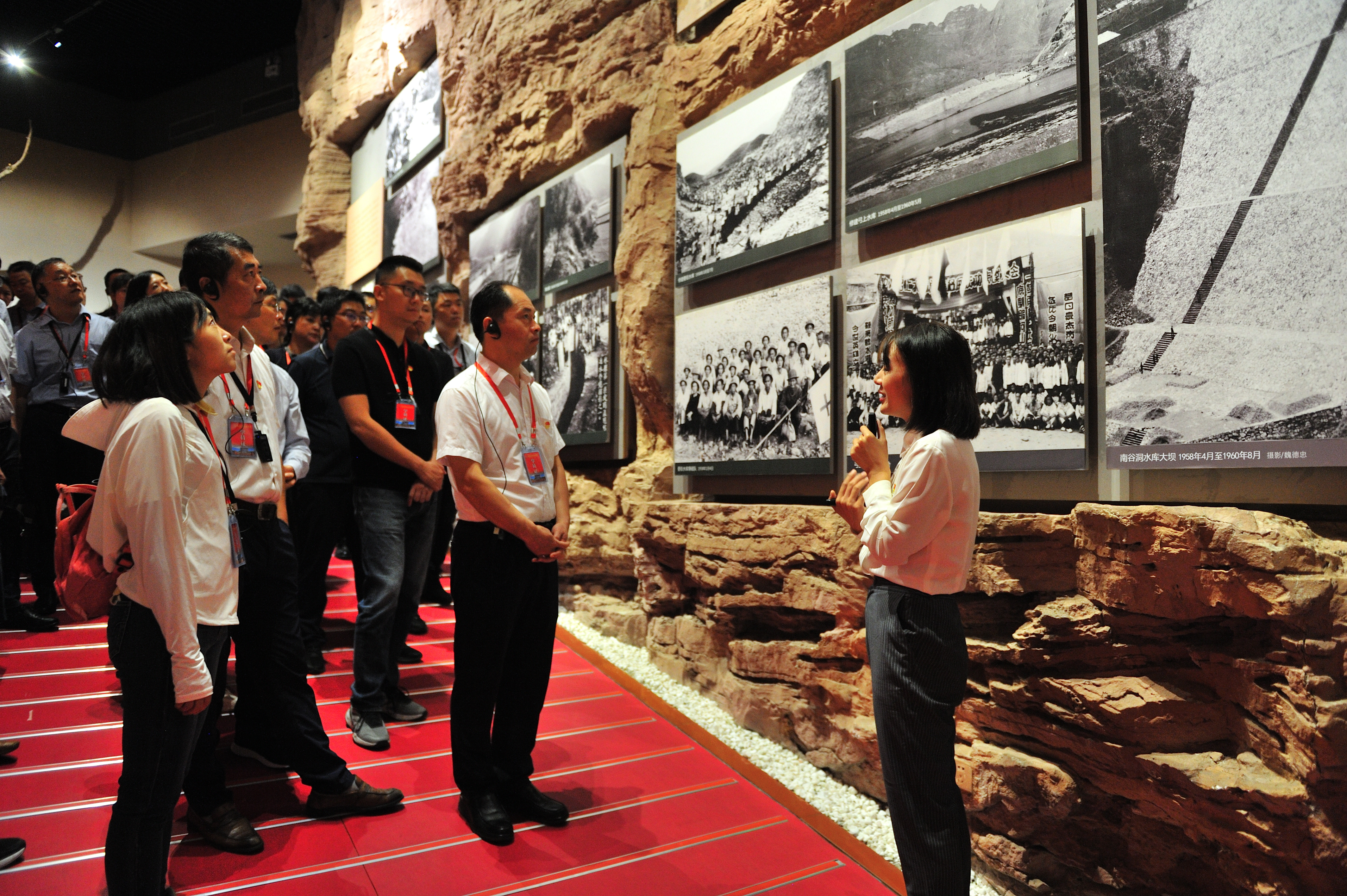 大家沿着习近平总书记的足迹,参观了红旗渠纪念馆。纪念馆内,一幅幅震撼的图片、一段段详实的文字、一组组惊人的数字、一件件珍贵的实物、一排排肃穆的名字,向我们展示了当年修渠的艰辛历程,深入了解“一部林县志,满卷旱荒史”的沧桑与悲凉,感叹林县人民十万大军战太行、出太行、富太行、美太行的英雄壮举。一渠绕群山,精神动天下,修建红旗渠是共产党人用初心和使命作出的战略抉择,是林县人民以智慧和力量写就的辉煌篇章。