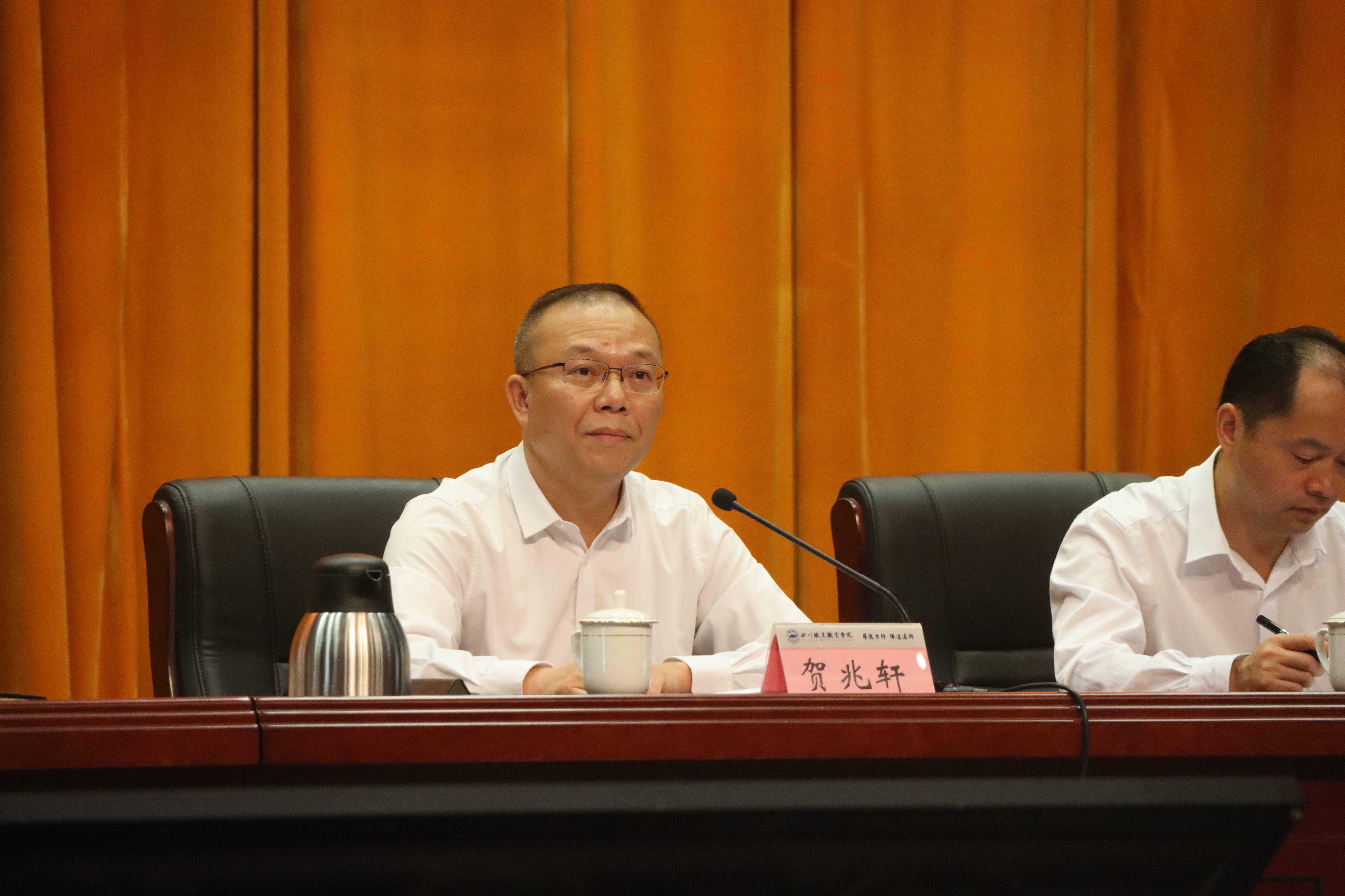 贺兆轩强调,蓝图已经绘就,关键在于落实。全体教职工一定要坚定信心,审时度势抓发展,从政治大势看、从行业态势看、从区域形势看、从自身积淀看,我们都有信心把学校办好。要坚守初心,挺膺担当谱新篇,要做伟大事业“筑梦人”、做攻坚克难“排头兵”、做教书育人“大先生”。希望广大教职工立足本职工作,找准目标定位,自信自强、守正创新、只争朝夕,以非凡努力抓好各项工作落实,奋力续写川铁职院的辉煌和荣光。 贺兆轩最后指出,站在新的历史起点上,我们责任重大、使命光荣,学校将坚持以师生为中心、坚持教师队伍优先发展,营造干事创业的良好环境,不断增强全体教职工的获得感、幸福感。希望广大教职工,以更加昂扬的状态、更加扎实的行动,脚踏实地、久久为功,为培养德智体美劳全面发展的社会主义建设者和接班人,为四川现代化建设作出新的更大贡献。 本次庆祝大会以线上线下相结合的方式进行,主会场设在成都校区大礼堂,分会场设在在内江校区多媒体四室。