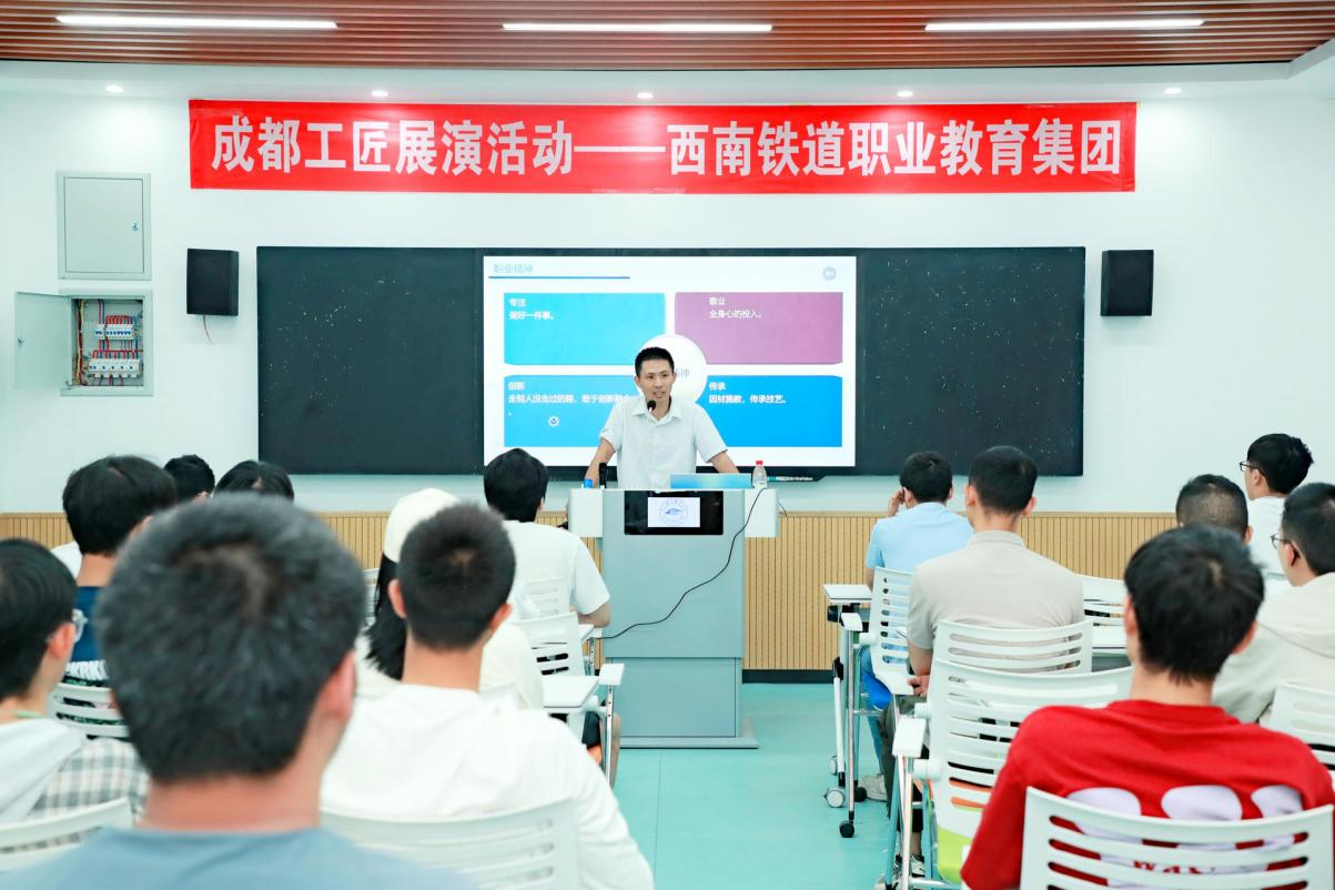 学校党委委员、副院长 黄恩兴 本次活动以“求知于共同·探索于共同·成就于共同”为主题,分为专家指导讲座、成都工匠技术交流、西南区域集中办赛三个模块。活动由四川省教育科学研究院、四川省高等教育学会指导,beat365英国官方网站主办,西南铁道职业教育集团、成都高职中专教育学会承办,《成都职教》融媒体中心协办。 黄恩兴在介绍中提到,西南铁道职业教育集团成立时间虽然不长,但始终以“产教融合、资源共享、互利共赢、服务发展”为宗旨,坚持深化产教融合、多元合作、创新技术技能人才系统培养机制,推动职业教育类型改革。此次活动,集团以组织技能比赛为契机搭建“双师型”教师数字化素养提升技术交流平台,希望真正做到发挥集团聚合资源、搭建平台的重要作用。
