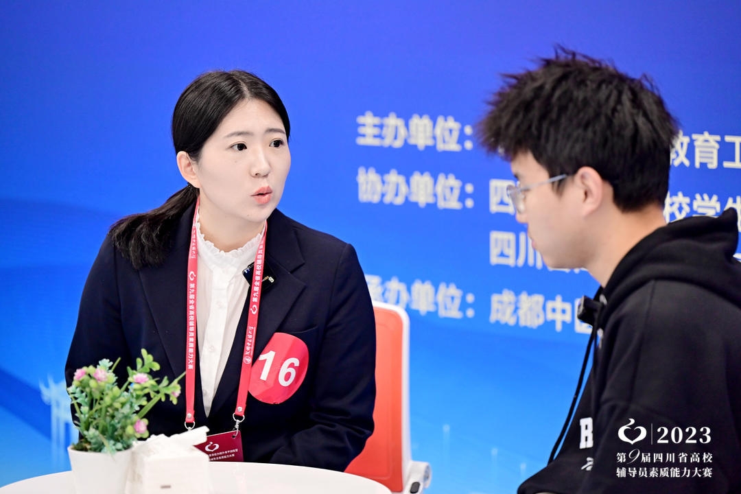 四川省高校辅导员素质能力大赛每两年举行一次。参加本届比赛共有107所的125名高校辅导员。全省高校辅导员素质能力大赛全面对标国赛标准,设置基础知识测试、谈心谈话、案例研讨三个环节,旨在考量辅导员的理论水平、职业能力、专业素养以及临场应急应变等专业技能。学校党委学生工作部、各二级学院积极组织校级辅导员素质能力大赛,选拔备战参加省赛,并做好赛前培训指导,不断打磨提升辅导员职业能力和综合素质。最终,李珂钰老师凭借扎实的理论基础、丰富的实践经验、沉稳的现场表现脱颖而出。