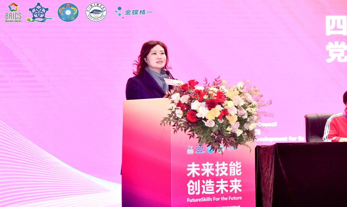 会上,金砖国家技能发展与技术创新大赛组委会国内竞赛处副主任何美连、金蝶精一信息科技服务有限公司总经理陈跃作相关发言,裁判员代表、参赛代表分别进行宣誓。