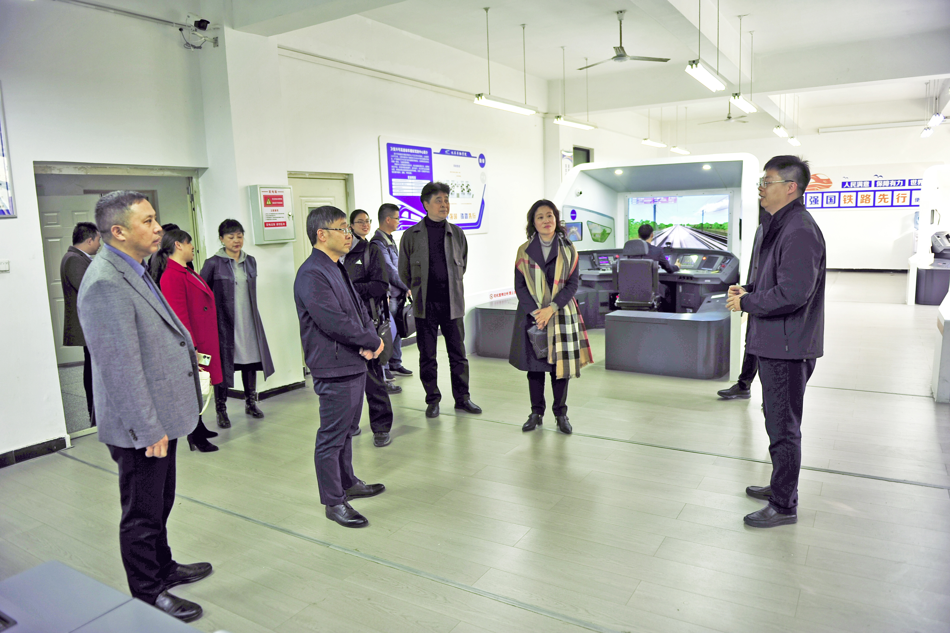 高司华一行先后参观考察了学校铁道综合实训基地、城市轨道交通综合实训中心、动车组机械师实训室、复兴号模拟驾驶实训室,详细了解学校设施设备、实训教学情况,对学校产教融合、校企双主体育人,紧跟数字化、信息化开展虚拟仿真教学等方面取得的成绩表示赞赏。