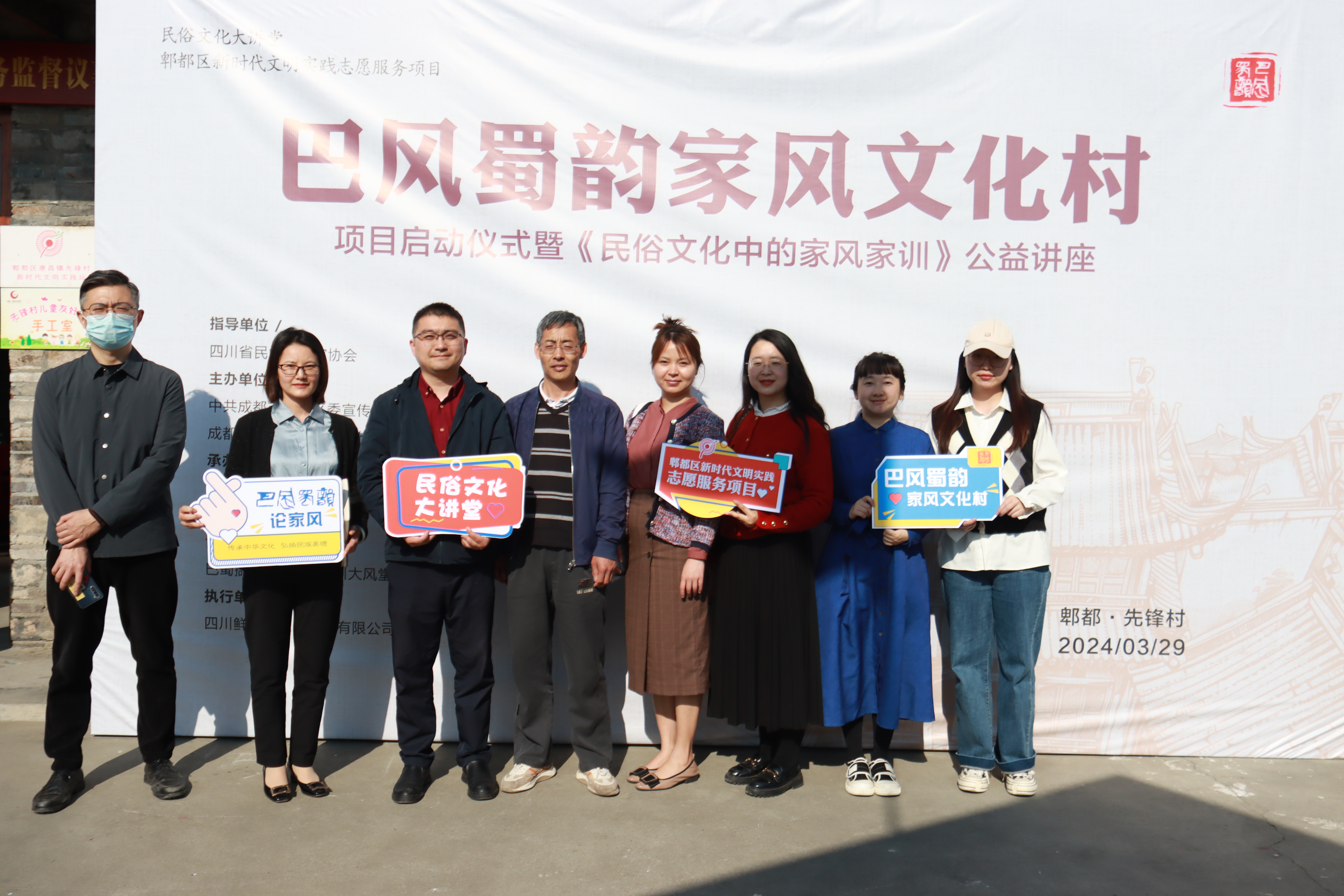 启动仪式暨《民俗文化中的家风家训》公益讲座由四川省民间文艺家协会指导,中共成都市郫都区委宣传部、郫都区新时代文明实践中心、郫都区关心下一代工作委员会主办,中共郫都区唐昌镇先锋村党委、成都市郫都区老科学技术工作者协会、beat365英国官方网站承办,四川鲜一步文化传播有限公司执行。活动吸引了众多嘉宾、专家学者及村民的参与。