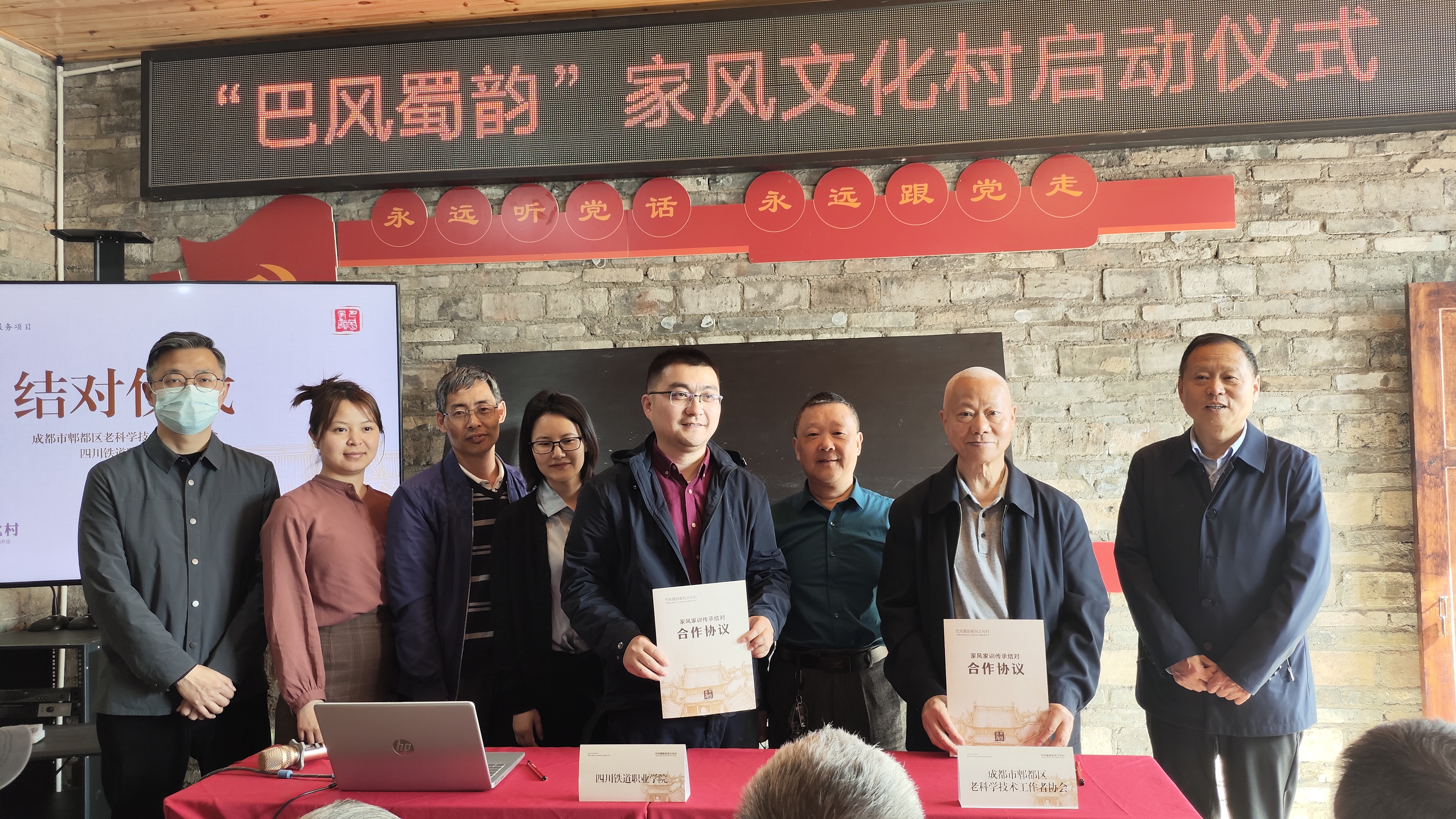 在启动仪式上,郫都区关心下一代工作委员会执行主任、老年大学校长、原区人大副主任张太康代表主办方发表了热情洋溢的致辞,强调了家风家训在促进社会和谐与文化传承中的重要作用。随后,举行了授牌仪式,正式标志着“巴风蜀韵”家风文化村项目的启动,并象征着先锋村在推广家风家训方面肩负起的重要使命。 活动中的结对环节引发了广泛关注。在这一环节中,郫都区老科协专家和beat365英国官方网站志愿者结为“传承伙伴”,现场签订结对协议,共同探索和推进家风家训的传承。这一创新举措不仅加深了专家与志愿者之间的交流合作,也为家风家训传承工作注入了新的活力。