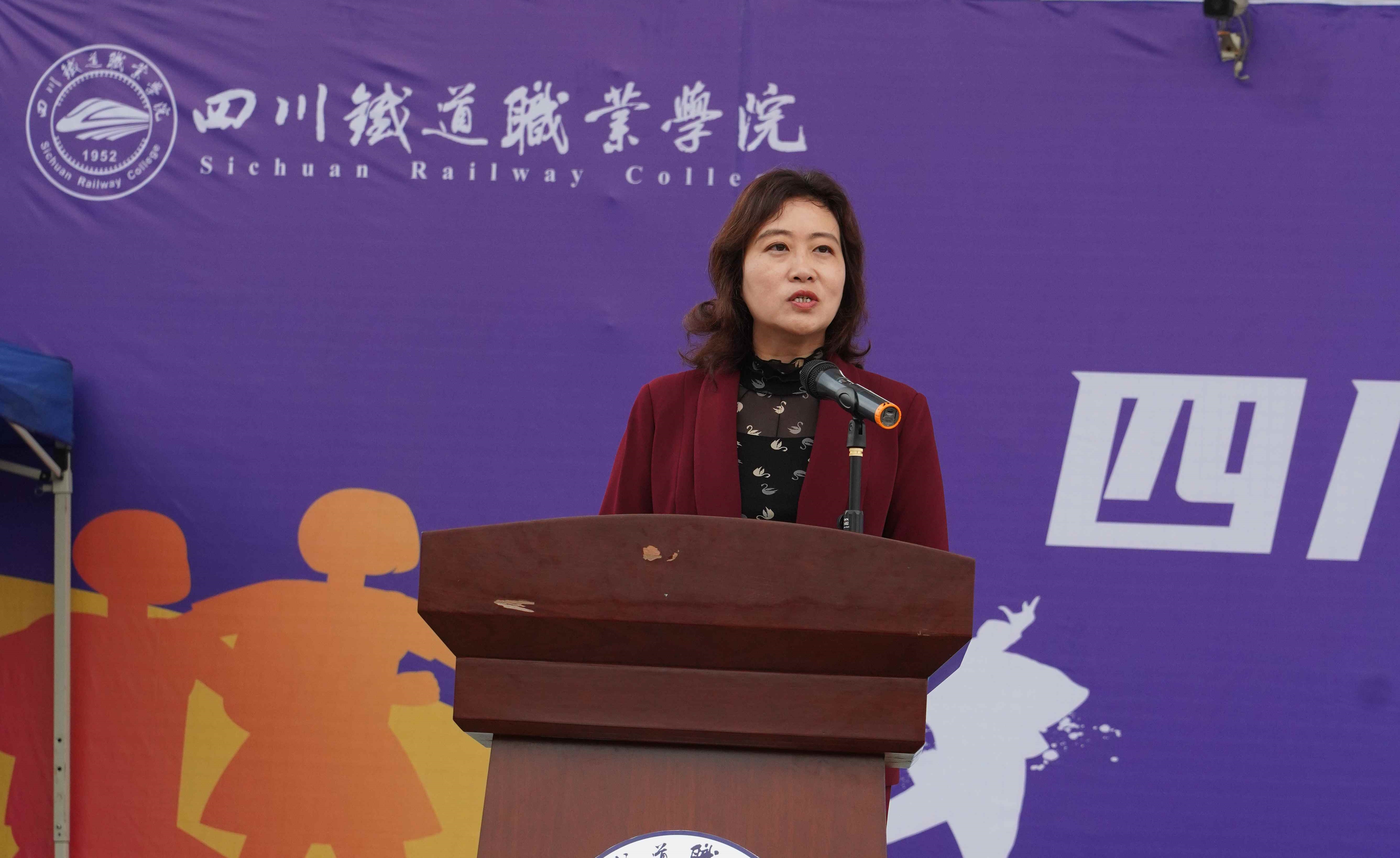 校长赖芳致开幕词。她指出,举办体育文化节是学校贯彻落实党的二十大精神,以实际行动助力体育强国、健康中国建设的重要举措,是坚持“五育并举”、推进“五育融合”的重要体现,是培养师生美育综合能力的有效途径。她强调,学校首届体育文化节以“健身强心 悦动川铁”为主题,通过举办体育主题文化展、体育健身知识竞答、体育摄影比赛、校园健康跑、文体节目表演等活动,就是要传承中华体育精神,弘扬爱国主义、公平竞争、团结协作、遵纪守法、敬业奉献等精神内核,汇聚起自强不息、奋发图强的磅礴力量。她要求,全体师生要凝心聚力,拼搏进取,努力成为新征程上的奋进者、开拓者、创造者和奉献者;要以坚定的信心与决心、悦动的活力与张力,书写川铁“双高”建设新篇章!