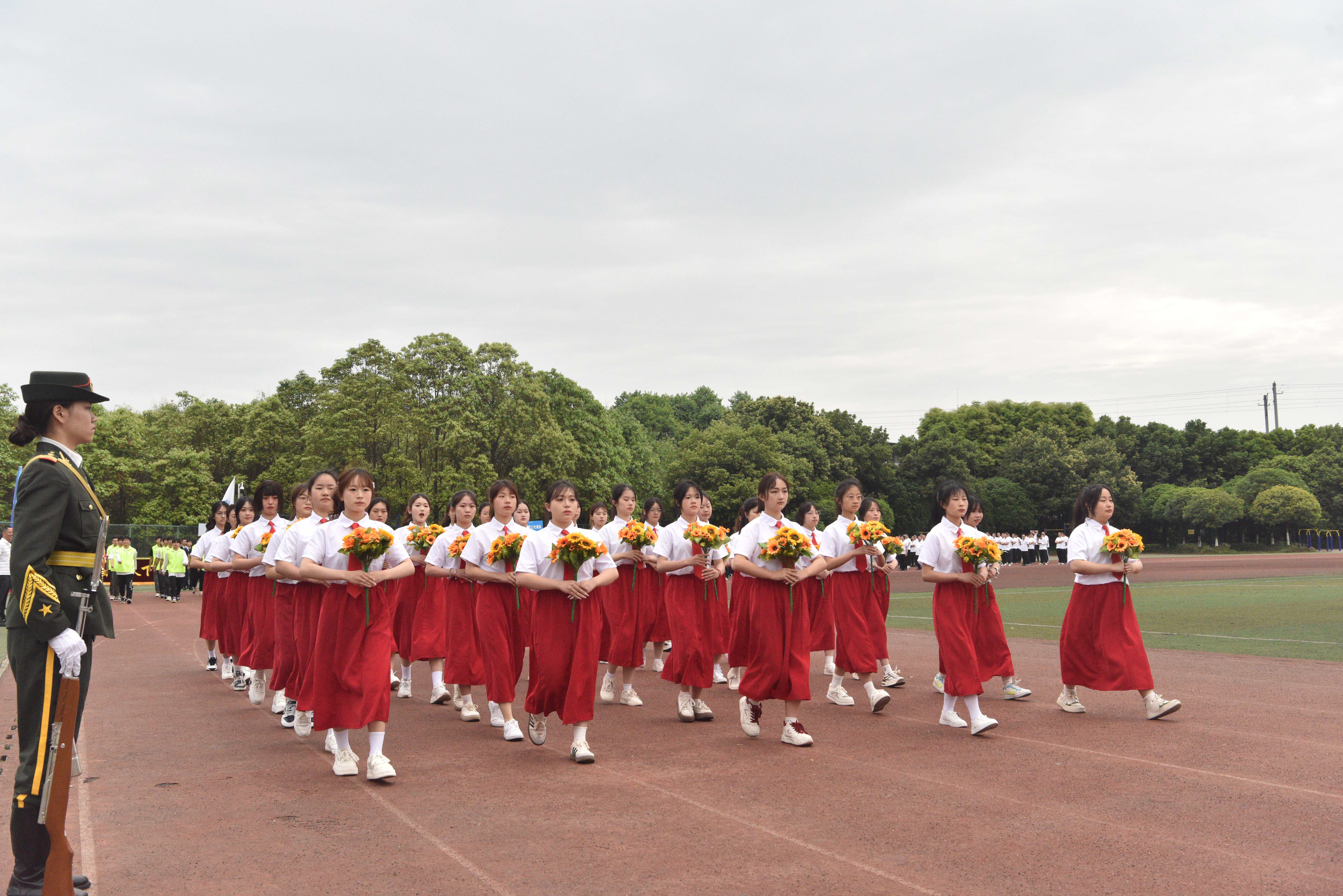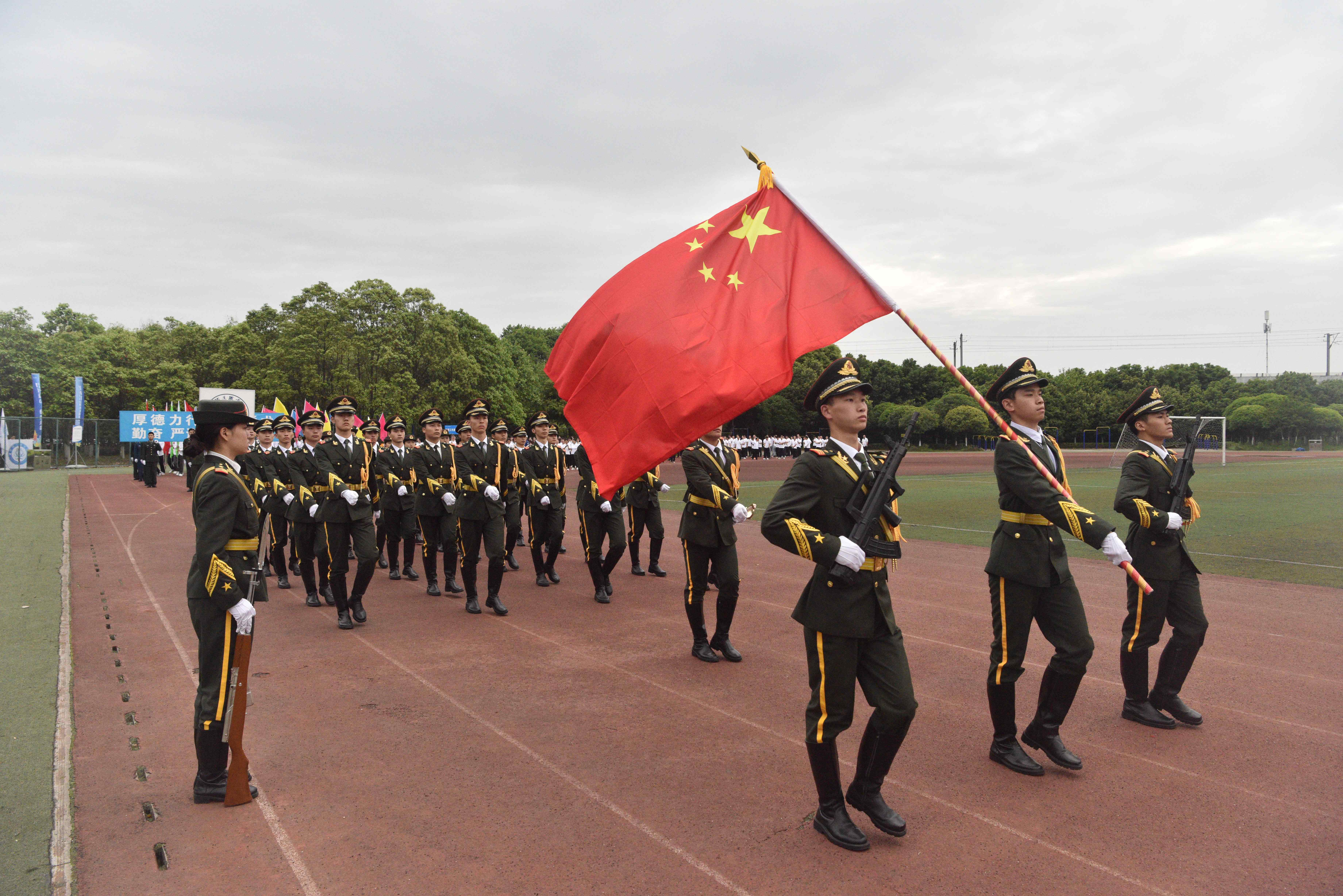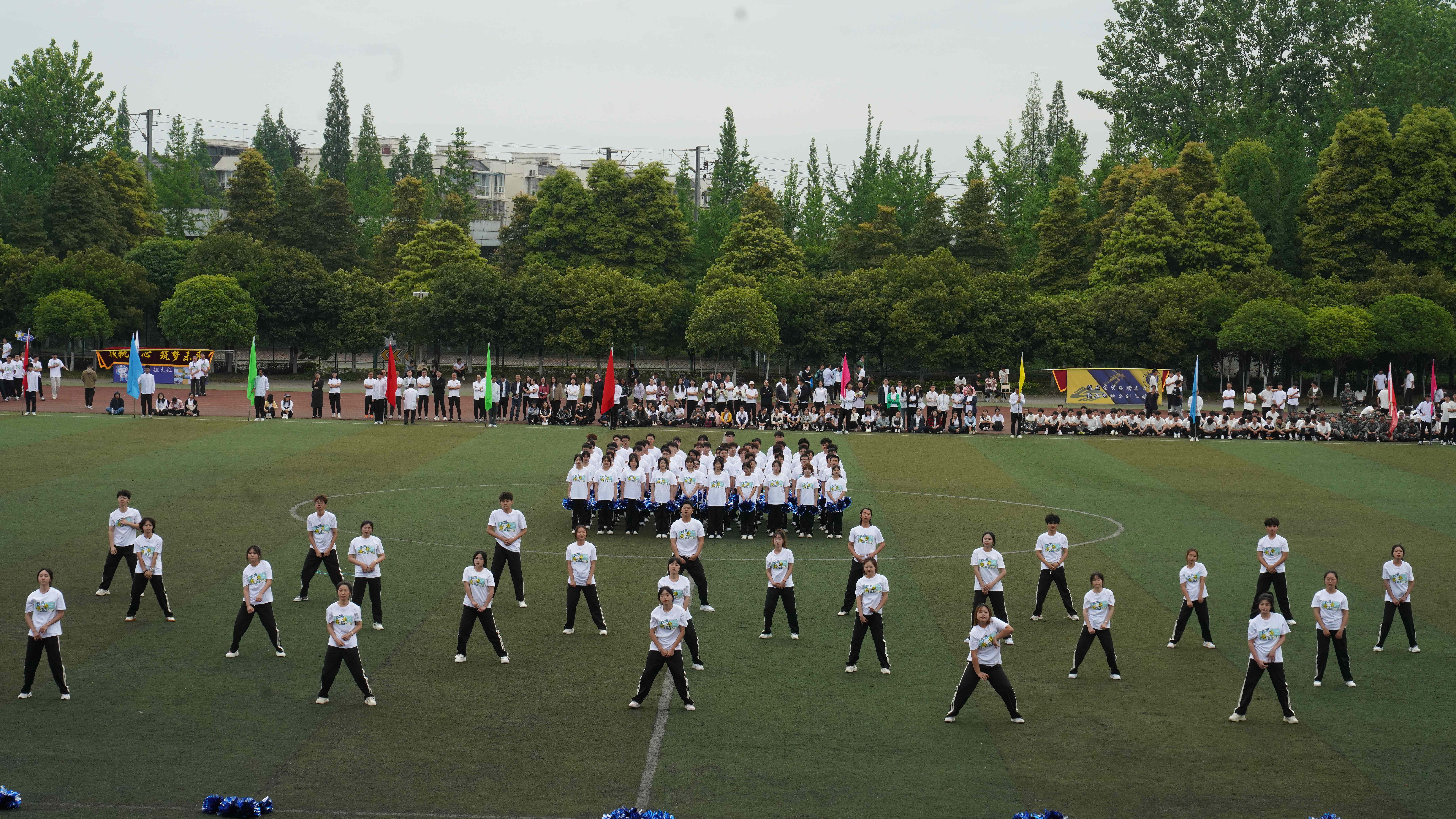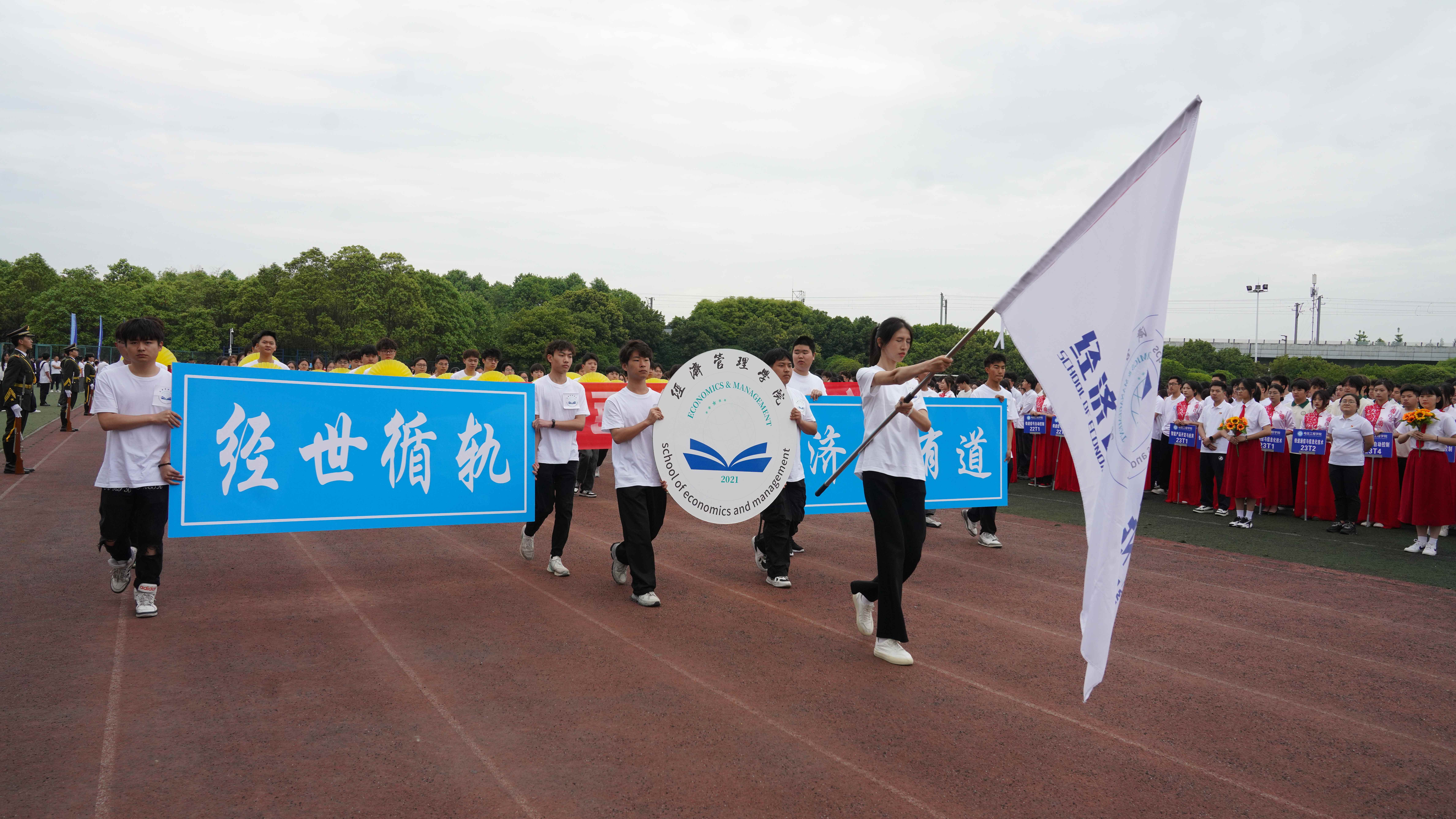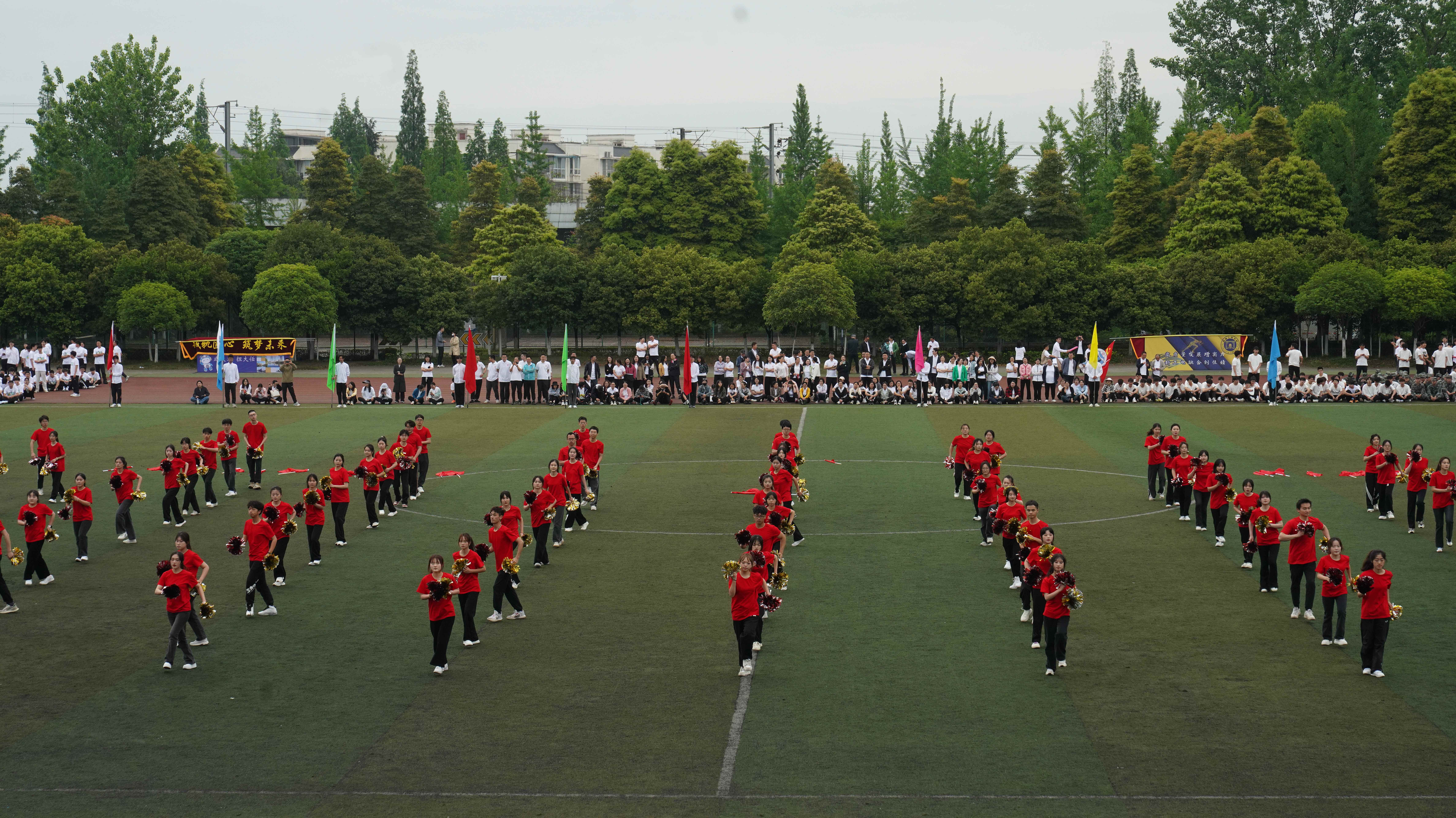 为贯彻落实习近平总书记关于加强学校体育工作的指示精神,教育引导师生树牢健康第一的理念,推动青年学生文化学习和体育锻炼协调发展,4月24日,学校隆重举办2024年体育文化节运动会,全校师生齐聚田径场参加开幕式。 上午八点三十分,开幕式正式开始。英姿飒爽的国旗护卫队、色彩绚烂的彩旗队、青春活力的鲜花队、气宇轩昂的裁判员队、教职工代表队和各学院学生代表队迈着整齐的步伐有序进场,展现了川铁师生青春洋溢、昂扬奋进的精神风貌。各方队入场后举行了升国旗仪式,全校师生齐唱《国歌》,以激昂的歌声表达对祖国的热爱之情。