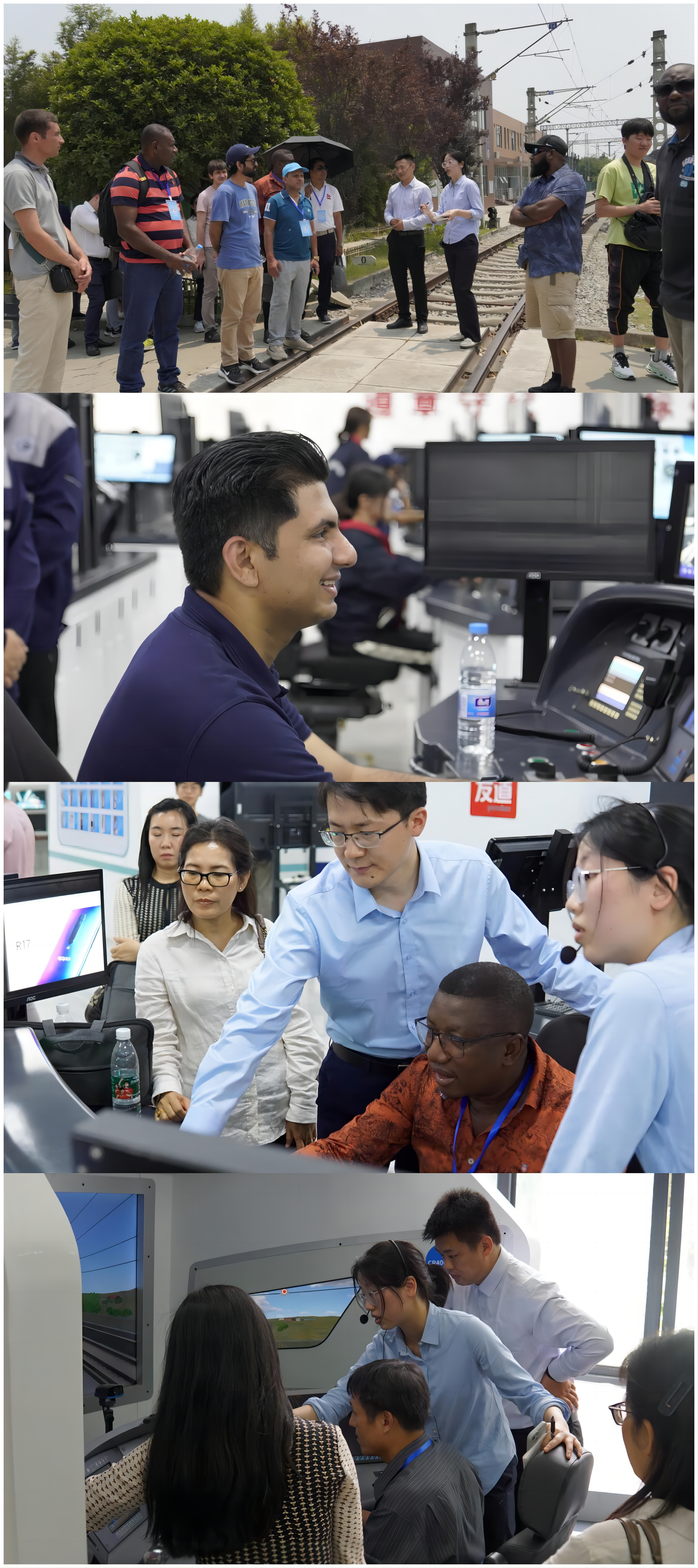 下午,研修班全体学员参观了学校高铁综合演练场、城市轨道交通综合实训中心及高速动车模拟驾驶中心并亲自操纵、模拟驾驶。