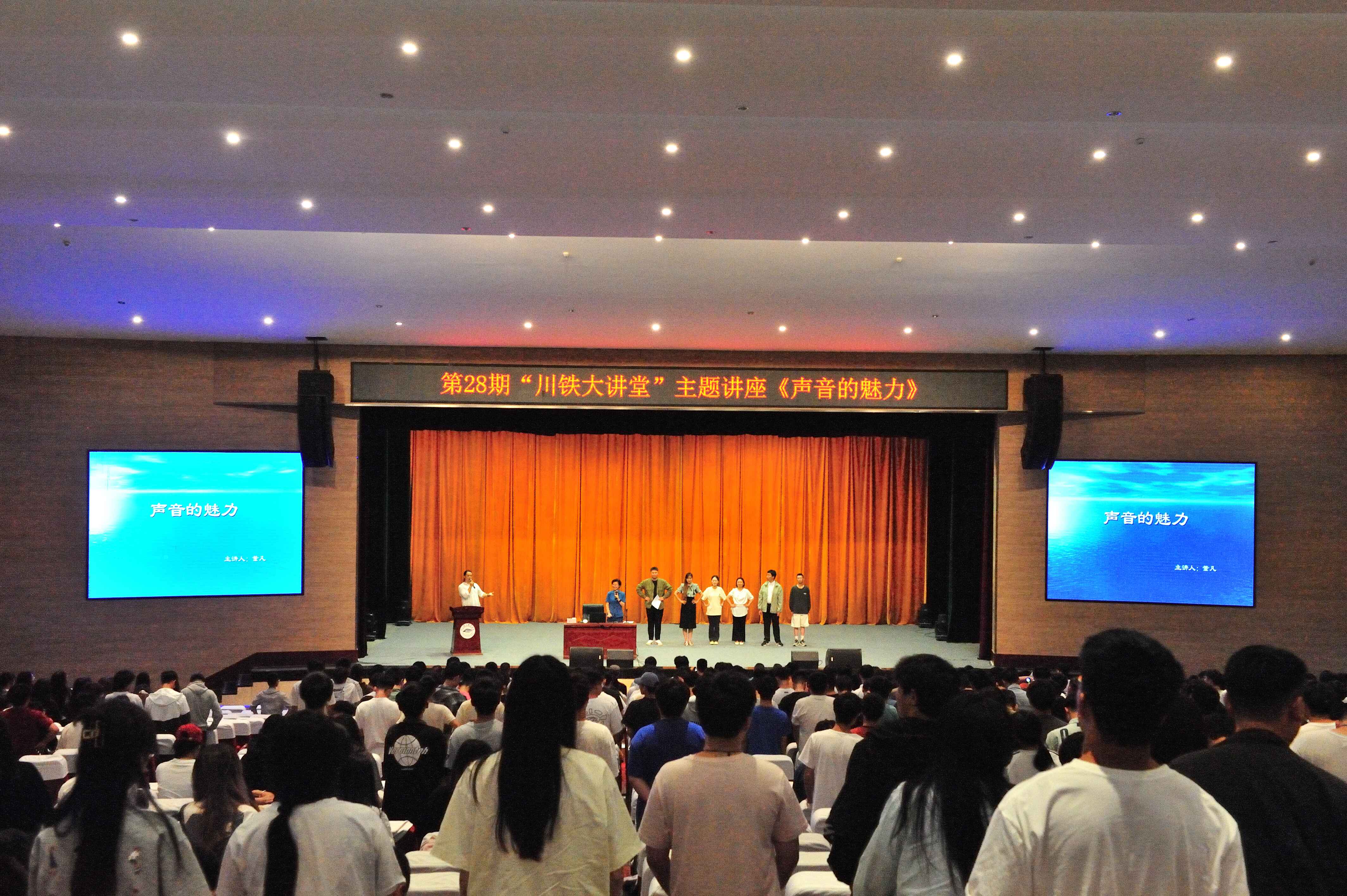 6月3日,学校“川铁大讲堂”特邀四川人民艺术剧院院长、国家一级演员、四川省戏剧家协会副主席,中国话剧“金狮奖”、公安政治部“优秀导演奖”、四川省“五个一工程奖”获得者董凡女士来beat365官网作“声音的魅力”主题讲座,四川人民艺术剧院国家二级演员谢黎明老师随同助讲。学校近900名师生现场聆听。
