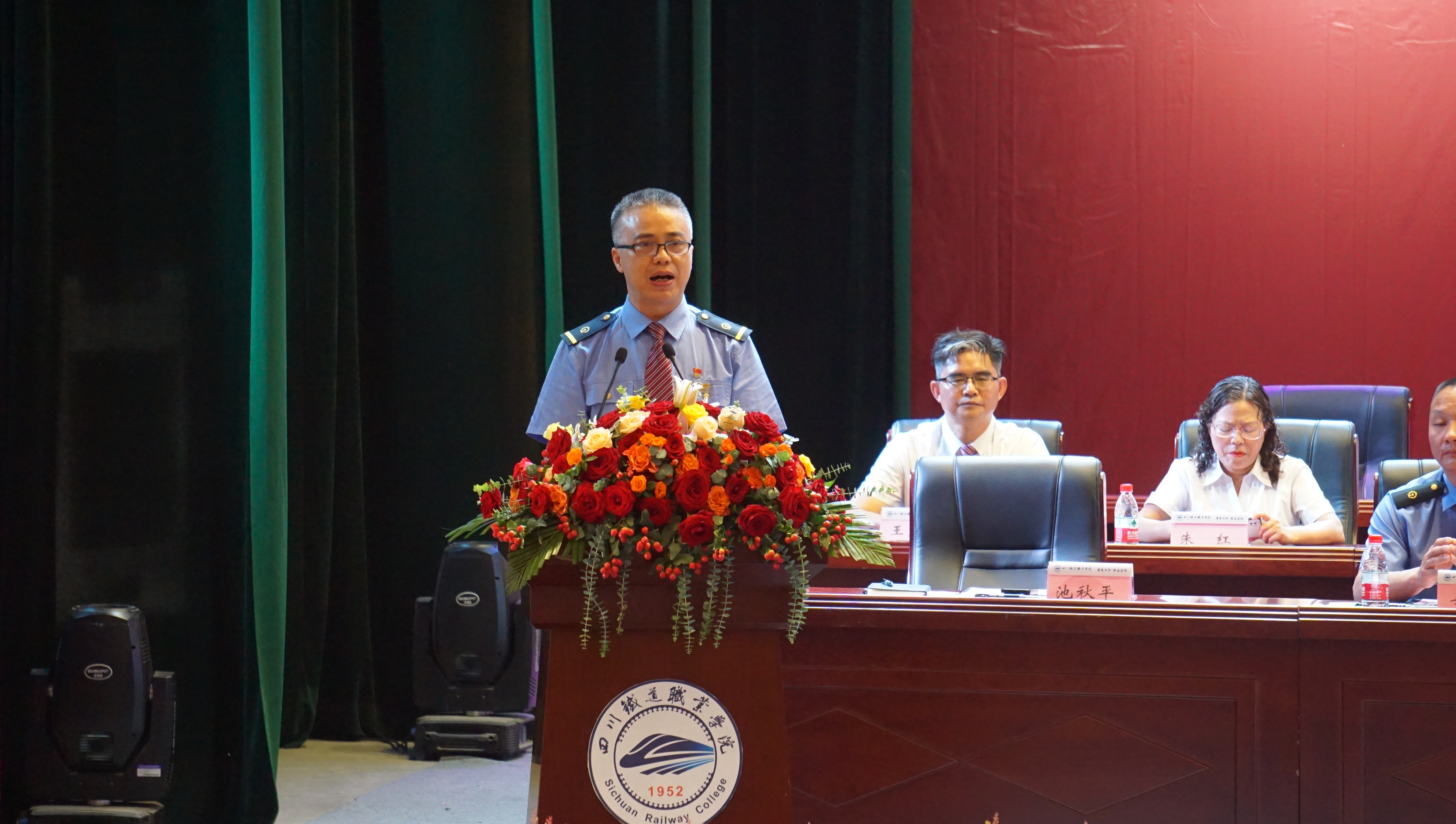 机车车辆学院毕业生家长代表、来自铁路一线的姜有云先生,感恩学校优秀的人文环境、优秀的师资队伍,感谢老师们春风化雨般的谆谆教诲,让两代人完成事业接力棒的交接。