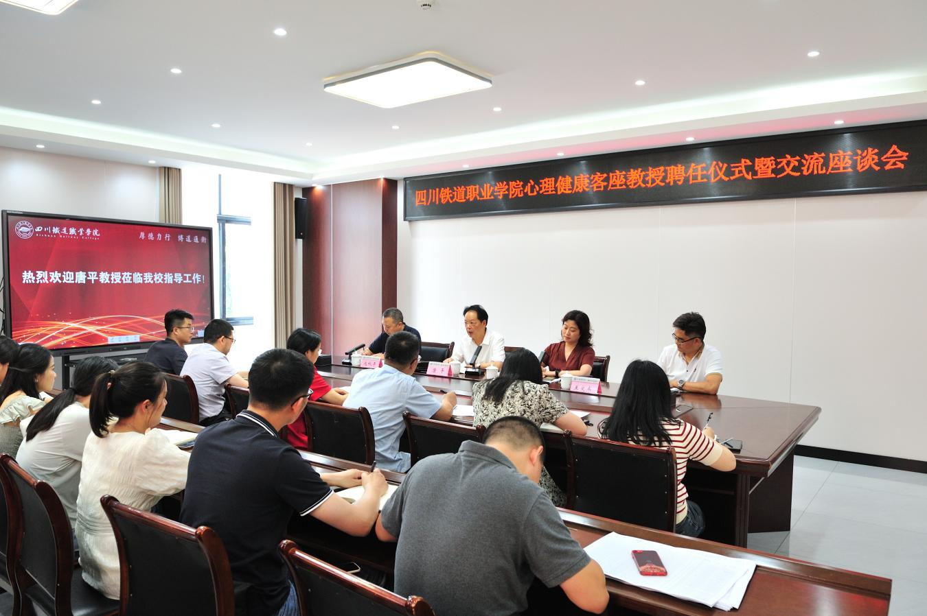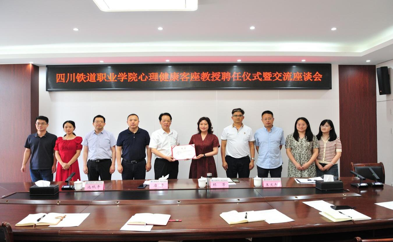 6月19日,beat365官网心理健康客座教授聘任仪式暨交流座谈会在行政楼第三会议室举行。成都医学院唐平教授、校长赖芳出席仪式,会议由纪委书记池秋平主持。