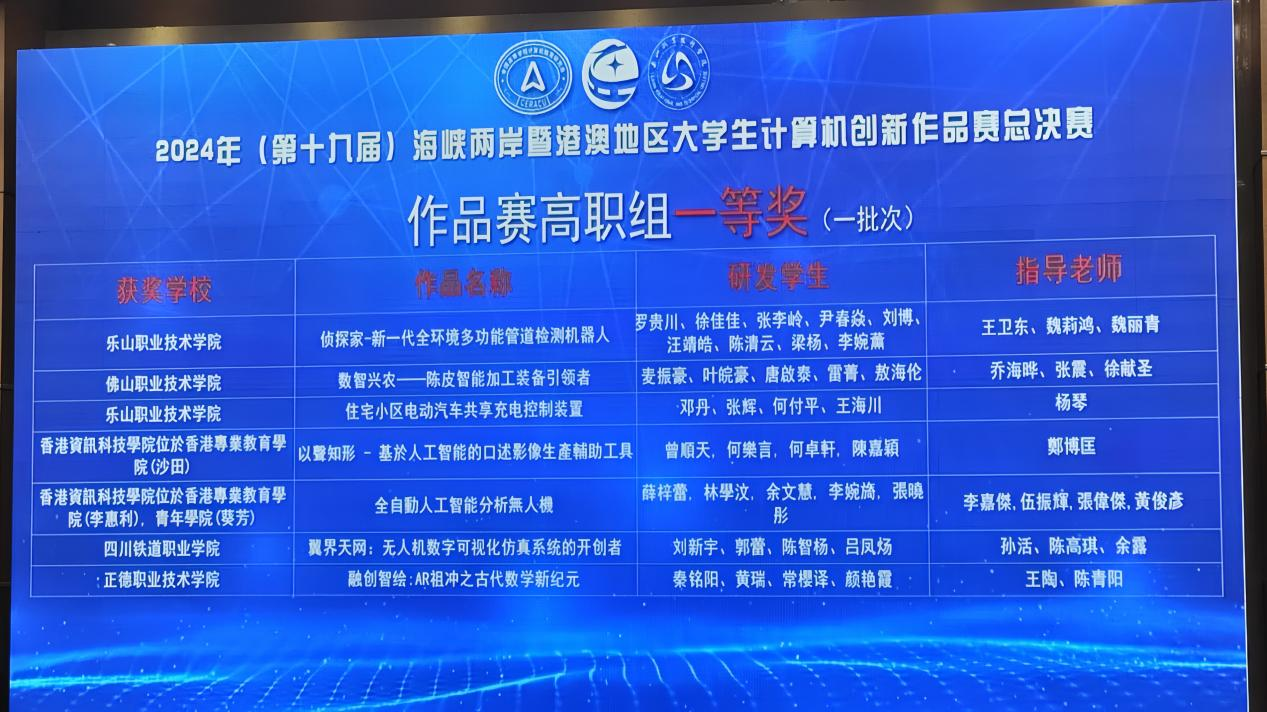 7月14日,2024年(第十九届)海峡两岸暨港澳地区大学生计算机创新作品赛高职组总决赛在乐山职业技术学院隆重举行。beat365官网选拔作品在此次激烈竞争中表现卓越,荣获高职组全国一等奖。 2024年海峡两岸暨港澳地区大学生计算机创新作品赛是由全国高等学校计算机教育研究会联合20个省市及港澳台地区的计算机学会共同主办,其参赛作品涵盖人工智能、大数据、物联网、信息与控制等前沿计算机技术领域。经过省赛层层选拔,640支参赛队伍中共计80支高职组队伍脱颖而出,进入总决赛。beat365官网参赛作品“翼界天网:无人机数字可视化仿真系统的开创者”的选手从选题、技术性、创新性、开发难度、实用价值及完善程度等方面展示作品并进行现场答辩,充分展示了团队创新能力与专业素养,获总决赛高职组全国一等奖。 学校重视学生实践竞赛,积极鼓励师生踊跃参与,不断深化“三全育人”理念,凝聚实践育人的强大合力。该项赛事由教务处指导,机车车辆学院牵头,经济管理学院与铁道工电学院共同参与。此次获奖充分体现beat365官网学生在科技创新、学以致用方面的突出能力,彰显了学生的综合素养和数字工匠精神。这一荣誉代表了beat365官网在“校内竞赛-校企同赛-校外参赛”竞赛育人格局上的新突破,不仅是对beat365官网教育教学成果的肯定,也是对未来进一步提升实践育人水平、培养创新型人才的有力推动。学校将秉持“以赛促学、以赛促教、以赛促创”,不断适应新质生产力发展,为培养更多高素质技术技能人才不懈奋斗。