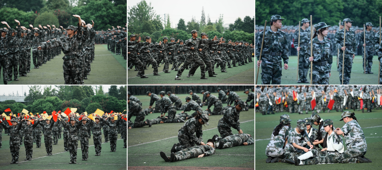 在汇报表演中,擒敌拳、匕首操、棍术、旗语和三防应急救护等依次亮相,同学们气势如虹、身姿矫健,拳出如锤、掌劈似刃,在一招一式中充分展现了当代青年学生的少年意气和砥砺奋发的青春热血,尤其是在组字环节中摆出“庆祝新中国成立75周年”字样,为即将到来的国庆节献上了青春贺礼。