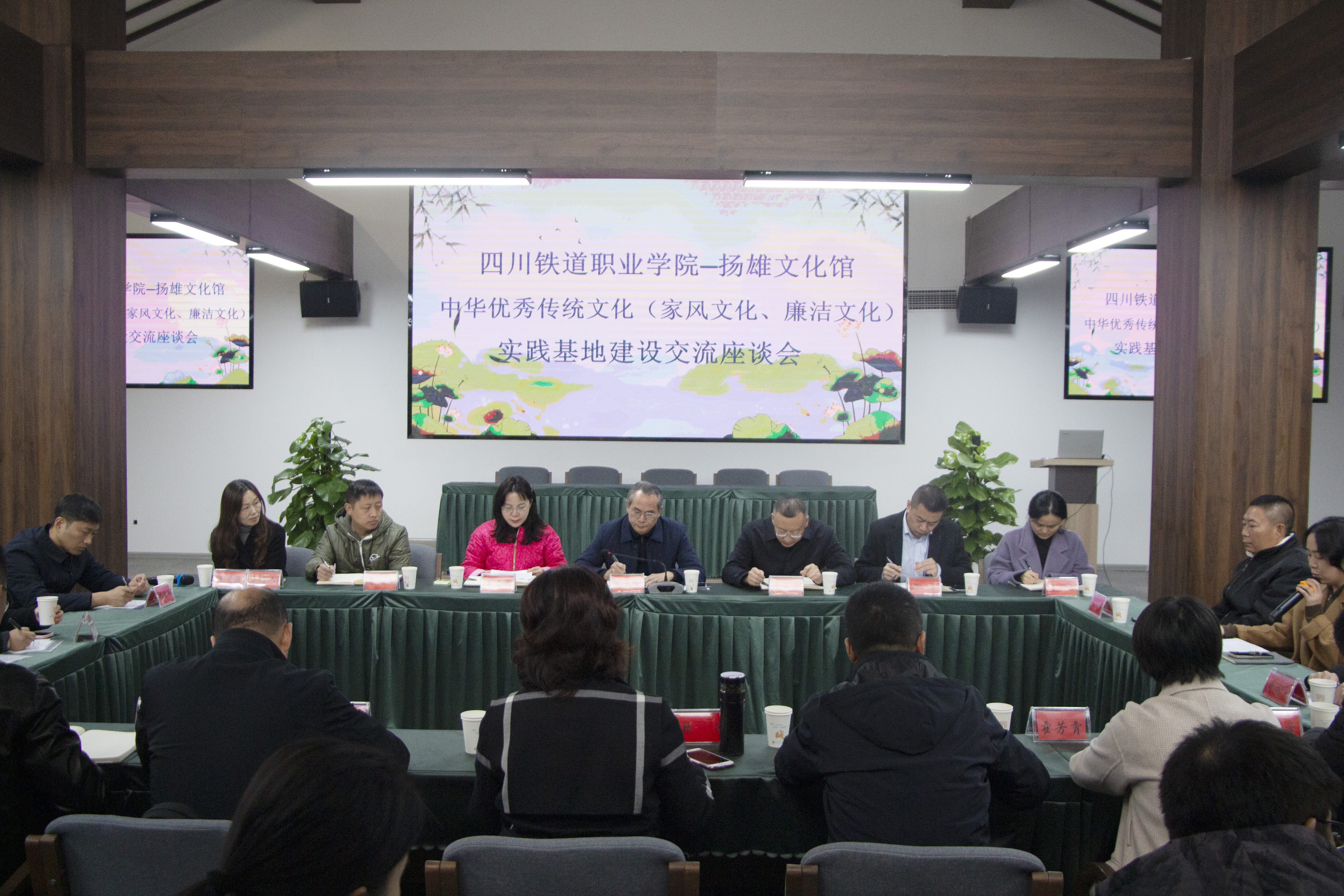 11月25日下午,学校与扬雄文化馆在成都市郫都区友爱镇农科村联合召开中华优秀传统文化实践基地建设交流座谈会。学校党委副书记、校长赖芳,郫都区委常委、统战部部长赵武斌,郫都区纪委副书记、区监委副主任廖施峻,郫都区妇联党组书记、主席吴蓉娟出席会议,郫都区组织部和友爱镇、农科村、扬雄学会相关领导和学校党委宣传统战部、发展规划处、教务处、党政办公室、公共教学部等部门负责人及中华优秀传统文化科研团队、机车车辆学院、心理健康服务中心教师代表参加了座谈。本次会议由郫都区妇联党委副书记吴薇薇主持。