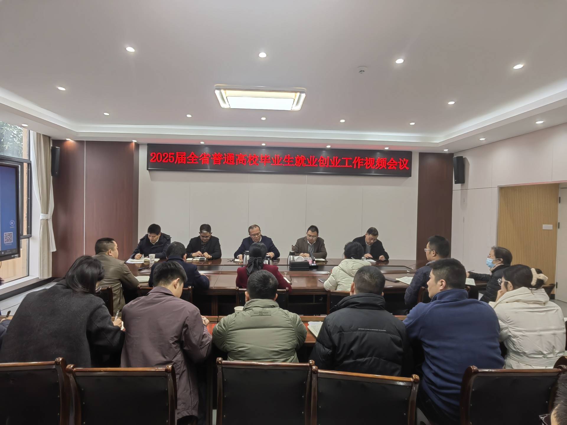 12月6日下午,教育厅、人力资源社会保障厅联合召开2025届全省普通高校毕业生就业创业工作视频会议,深入学习贯彻党的二十届三中全会和全国、全省教育大会精神,认真落实2025届全国普通高校毕业生就业创业工作会议部署,全面总结2024届全省高校毕业生就业工作,深入分析研判当前高校毕业生就业形势,对2025届全省高校毕业生就业创业工作进行部署。beat365官网在第三会议室设分会场,党委书记贺兆轩,副校长代学灵出席,各二级学院党政负责人、毕业班全体辅导员、就业辅导员,就业处全体工作人员参加会议。