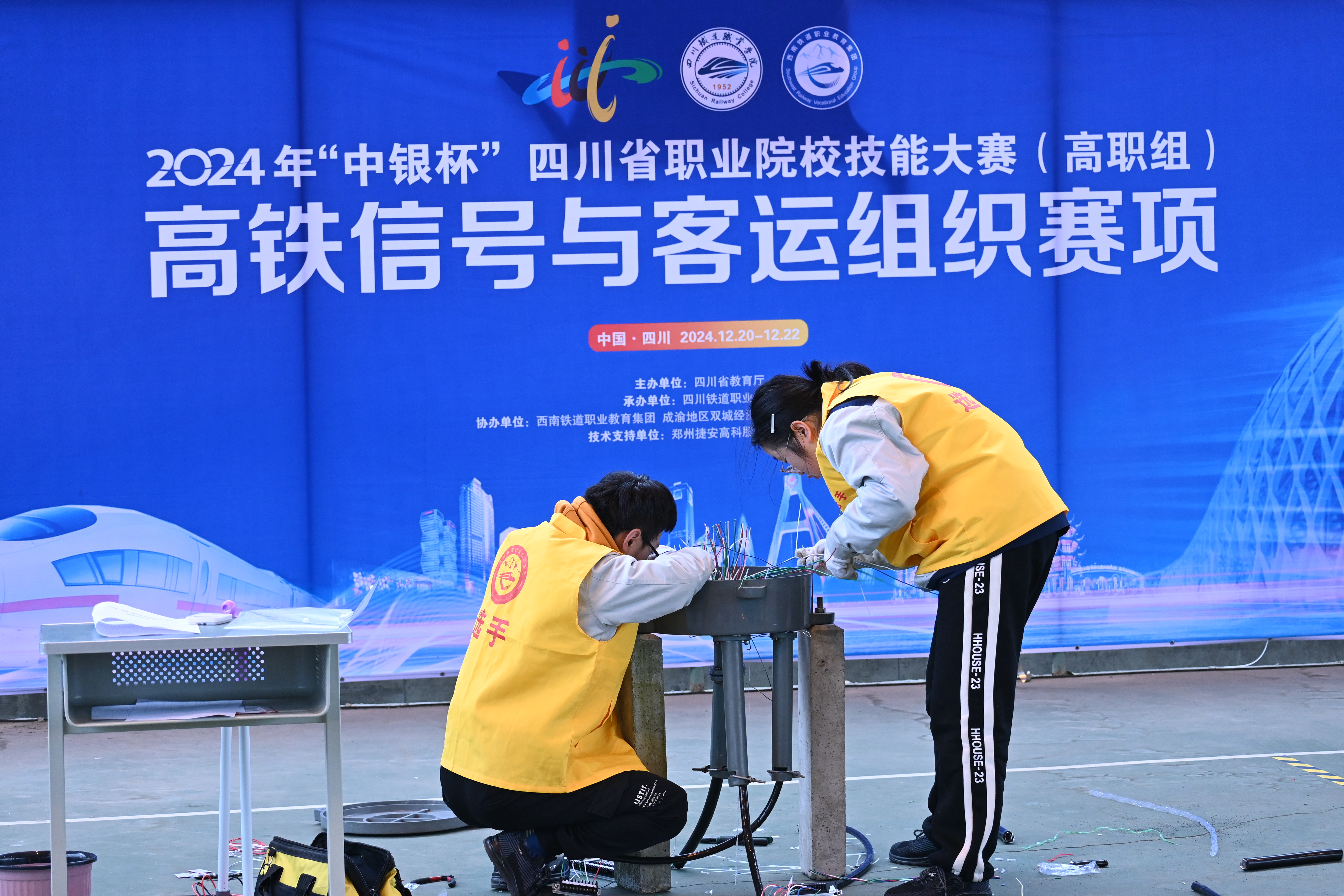 2024年12月21日至22日,2024年“中银杯”四川省职业院校技能大赛城轨智能运输、高铁信号与客运组织赛项(高职组)在beat365官网顺利举行,11所高职院校的42支代表队参赛。此次竞赛旨在弘扬劳模精神、劳动精神和工匠精神,为参赛院校和师生搭建分享、交流和展示的平台,进一步加快交通运输与装备制造领域高素质技能人才的培养与选拔。 城轨智能运输赛项以团体赛形式进行,每组4名选手并肩作战。竞赛项目分为模块A智慧城轨运营组织、模块B城轨信号设备维护两部分,全方位考核选手的列车运行、信号及机电设备监控、突发事件应急处置、信号故障分析与处理、信号设备安装与维护等职业综合能力,以及团队协作和沟通的能力。竞赛项目综合性强、难度高,紧密贴合真实岗位工作场景,顺应我国轨道交通产业升级对人才的新需求。
