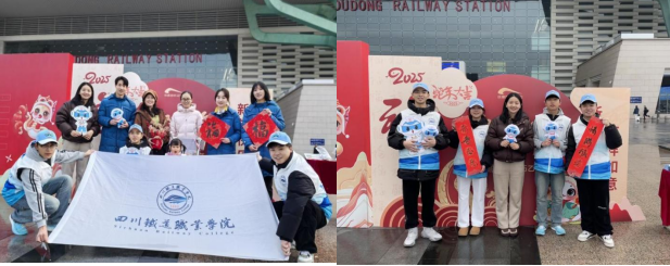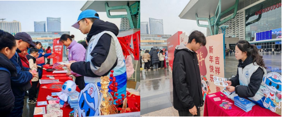 为深入学习贯彻习近平总书记关于春运工作的重要指示精神,以及省委、省政府关于2025年春运工作的部署安排,1月14日即2025年春运首日,beat365英国官方网站“铁小川”志愿服务团队携手成都市文学艺术界联合会、成都市政府火车站管委会、成都地铁等多家单位,在成都东站西广场共同举办“青春志愿 情满旅途”主题安全宣传活动,助力“平安春运、便捷春运、温馨春运”。 上午10时,成都东站西广场门口,志愿者们精神抖擞,整装待发。在主持人的引领下,志愿者代表们庄严宣誓,誓言铿锵有力,彰显了志愿者们服务春运的坚定决心。宣誓结束后,志愿者们迅速投入到紧张而有序的准备工作中,为即将开始的活动做好充分准备。