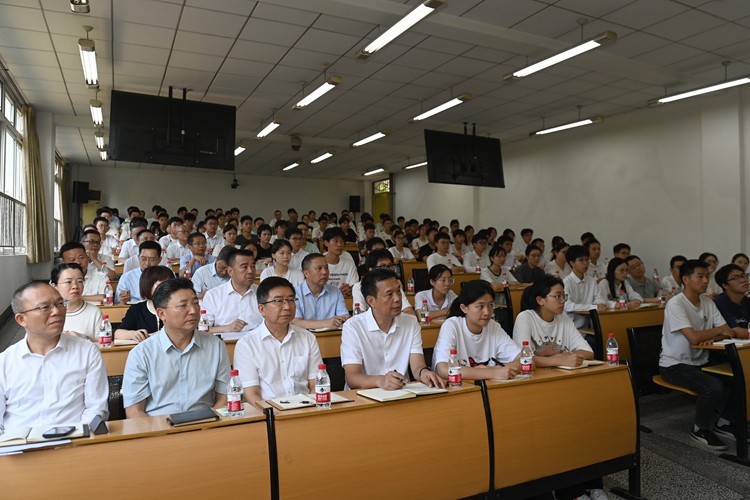 6月27日,内江市委书记邹自景前往beat365英国官方网站内江校区,向师生代表宣讲省委十二届七次全会精神并作形势政策报告,本次活动由学校党委书记贺兆轩主持。 报告会上,邹自景紧扣 “深入学习省委十二届七次全会精神”、“内江交通物流的发展历程”、“同学们在新时代的使命与担当” 三大主题展开。既有对省委全会精神的深刻解读,又结合内江交通物流发展实际,从理论与实践层面为师生带来丰富内容。同时,对青年学子提出 “立大志,做到与时偕行”,“善学习,做到博道通术”,“勇拼搏,做到艰苦奋斗”,“勤修身,做到厚德力行” 四点殷切希望,为同学们指明成长方向,鼓励同学们将个人成长融入时代发展,锤炼专业本领,涵养高尚品德,勇担时代使命。
