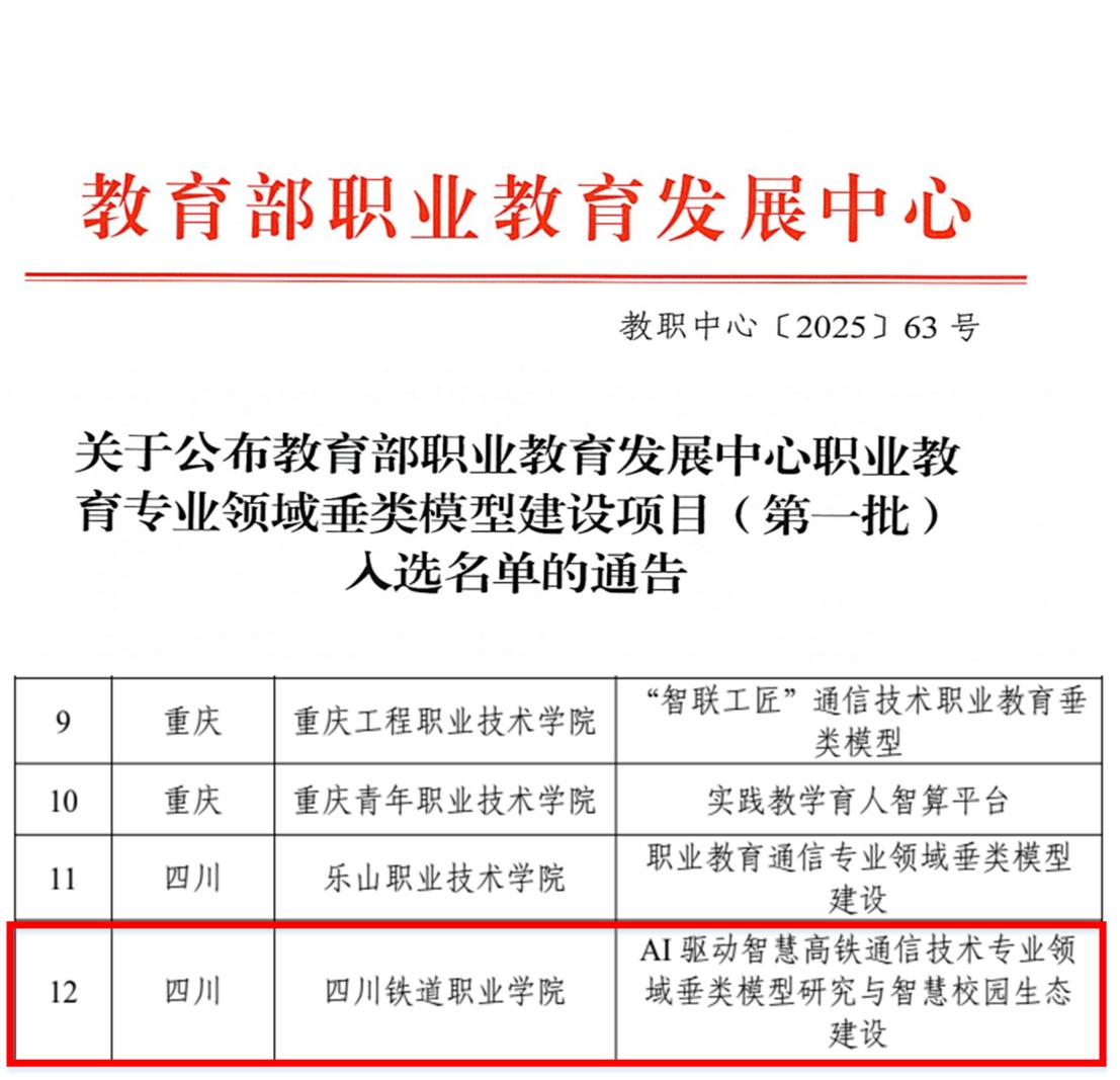 近日,由beat365官网电信工程学院与信息化建设与管理处联合申报的“AI驱动智慧高铁通信技术专业领域垂类模型研究与智慧校园生态建设”项目,成功入选教育部职业教育发展中心首批职业教育专业领域垂类模型建设项目。