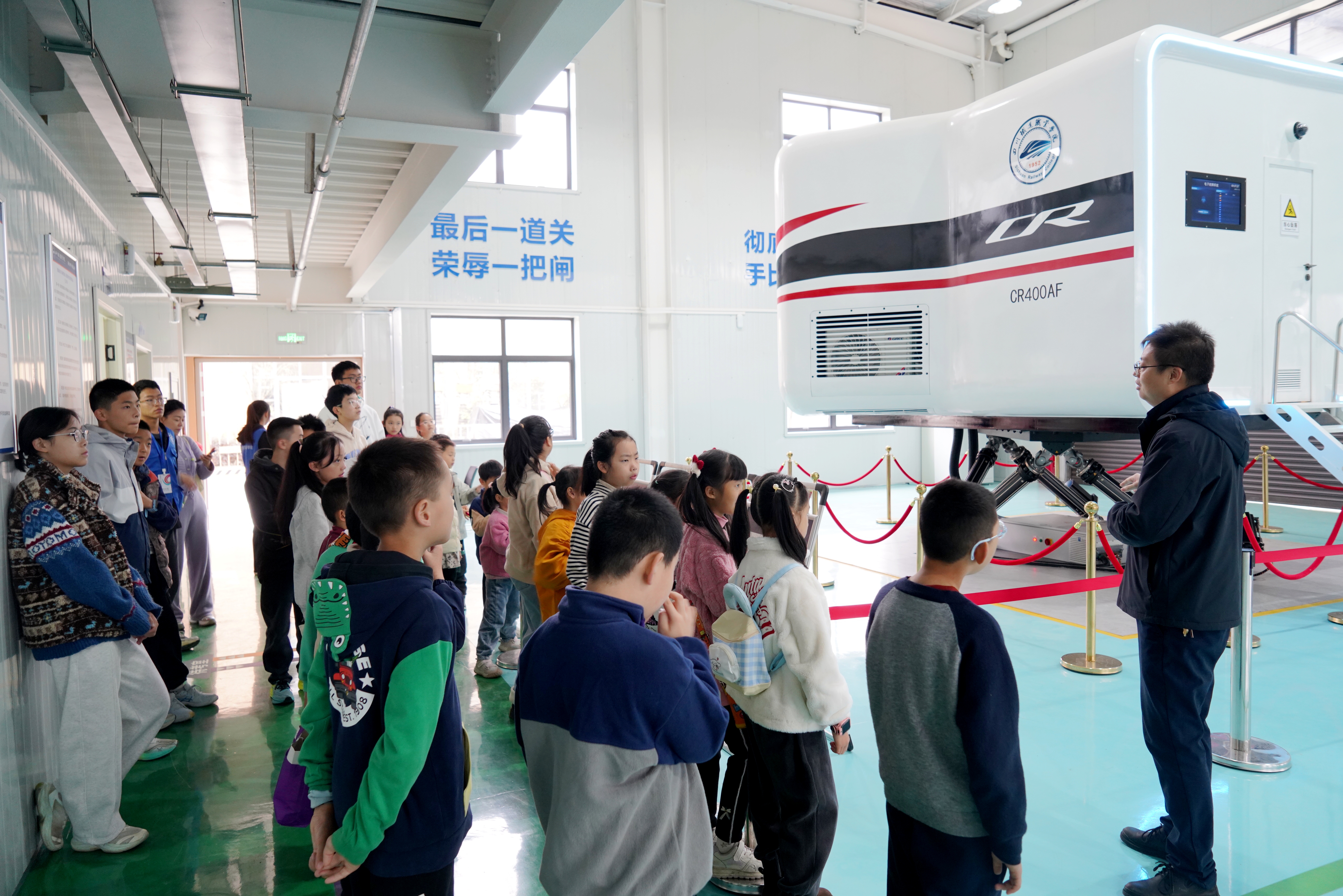 为深入落实四川省中小学秋假试点政策,切实解决教职工子女假期看护难题,11月12日,beat365英国官方网站工会依托学校特色资源,组织开展“悦享秋假·铁小苗校园寻美”教职工子女主题实践活动,近50名“铁小苗”走进父母工作的校园,沉浸式体验铁路文化,共度温馨充实的秋假时光。 作为全省首批春秋假政策落地背景下的创新举措,本次活动充分发挥学校作为四川省中小学生思政一体化教育基地和轨道交通科普基地的优势,将劳动教育、职业启蒙、科学普及与亲情陪伴有机融合,打造寓教于乐、知行合一的成长课堂。 活动中,“小小司机”们走进动车组模拟驾驶实作考点,在大学生志愿者引导下,亲身体验高铁与地铁模拟驾驶。手握操纵杆、紧盯信号屏,孩子们在逼真场景中感受中国轨道交通的速度与科技魅力。“为什么高铁很少鸣笛?”“座位颜色有何含义?”……一个个充满童趣的问题接连抛出,专业教师用通俗语言揭开铁路运行背后的科学奥秘,在孩子心中播下探索与职业理想的种子。