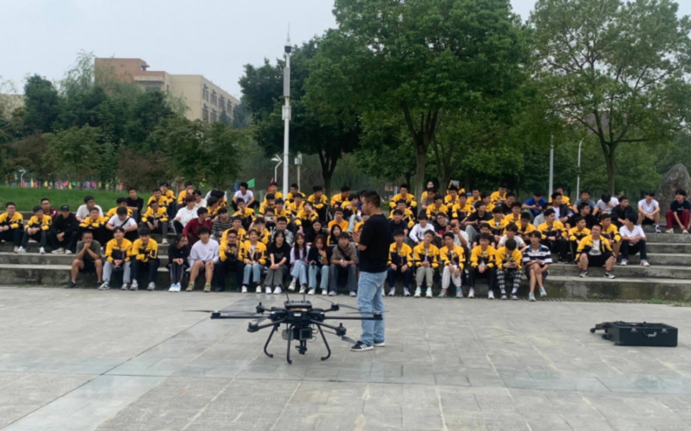 9月28日下午在天佑广场,技术专员韩嘉俊、吴瞒瞒工程师为同学们介绍无人机构造、自动巡航无人机驾驶技术以及三维激光扫描仪的运用方法,在认真听完技术工程师的介绍后,同学们踊跃参与无人机及三维激光扫描仪的操作,并利用“测绘科技进校园”这次难得的机会,积极向南方测绘的技术人员询问测绘技术的运用发展,测绘技术在轨道交通领域的应用以及测绘技能大赛的相关情况。